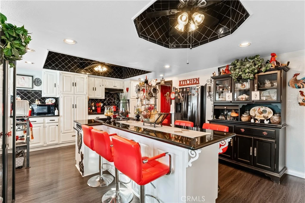 Tucked into the heart of San Pedro’s Mesa neighborhood, this updated home offers rare flexibility with a true basement an uncommon find in coastal South Bay living. The lower-level features three separate rooms plus an open lounge area, ideal for guests, creative space, or multi-generational living, all accented by distinctive custom rock flooring. The main level is filled with natural light and character, showcasing three bedrooms, two baths, and a bold kitchen with striking red and black cabinetry, generous counter space, and a center island built for everyday living and entertaining. Beamed ceilings, statement lighting, and a formal dining area add warmth and architectural charm you won’t find in newer construction. Basement access from the living room or own access keeps the layout seamless while maintaining privacy. Located just minutes from downtown San Pedro, the LA Waterfront, West Harbor redevelopment, Cabrillo Beach, Point Fermin Park, and local favorites like Brouwerij West, this home puts you close to dining, culture, and ocean breezes. A unique opportunity for buyers who want space, character, and location.