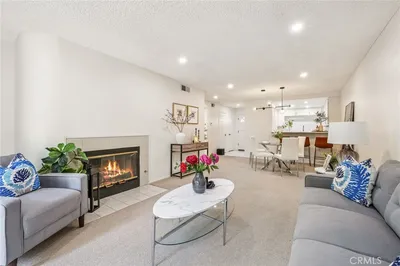 Top floor living in the desirable Casa Verde community offers light, openness, and everyday convenience. This one bedroom, one bathroom condo features an open floor plan with a spacious living room, cozy gas fireplace, and private balcony. Recent upgrades throughout the unit create a sleek, clean aesthetic, complemented by updated appliances and a recently replaced HVAC system, while the kitchen opens to the living area and includes convenient in unit side by side laundry. Additional highlights include laminate wood flooring, large hallway closets with sliding doors, central air conditioning, and two assigned secure parking spaces with ample guest parking. The community is quietly positioned along a private drive just minutes from shopping, restaurants, and easy access to the 110 freeway.