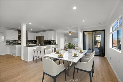 Beautifully upgraded and impeccably maintained, this spacious multi-level residence offers 3 bedrooms, 2 bathrooms, generous living areas, and scenic neighborhood, harbor, and city-light views. Blending comfort, style, and functionality, the home features an open and airy layout with a balcony, abundant natural light, and thoughtful updates throughout. The main level is designed for both everyday living and entertaining, showcasing an expansive living room with fireplace, a formal dining area, and a remodeled kitchen with sleek countertops, custom cabinetry, stainless steel appliances, designer backsplash, and oversized breakfast bar seating. Recessed lighting, updated flooring, and a seamless connection between the kitchen, dining, and living spaces create a warm and inviting flow. Upstairs, the spacious primary suite serves as a private retreat with its own balcony, beautiful views, a sitting area with fireplace and custom built-ins, a large walk-in closet, and an updated en-suite bath. Two additional bedrooms provide flexibility for family, guests, or a home office. The secondary bathrooms have been tastefully updated, and the separate laundry area and generous pantry add everyday convenience. From the charming Spanish-inspired exterior to the light-filled interior spaces and elevated setting, this home offers a rare combination of character, livability, and view-oriented appeal. Enjoy indoor-outdoor living, multiple entertaining spaces, and a location that captures the beauty of the surrounding neighborhood with distant harbor and skyline vistas.