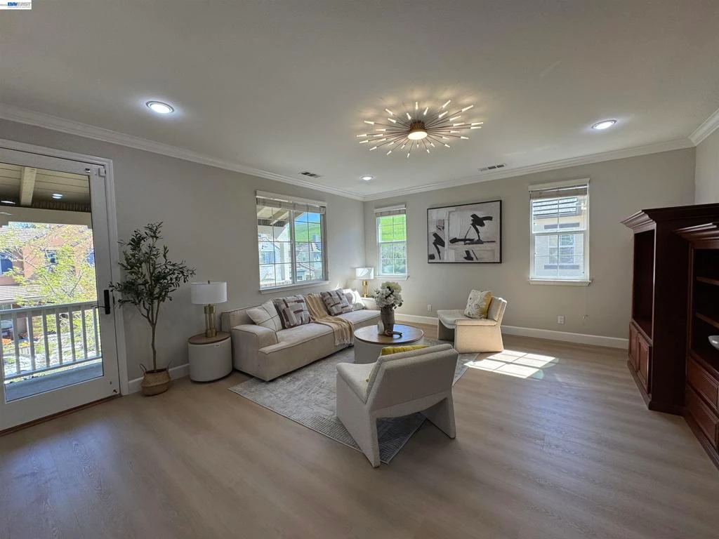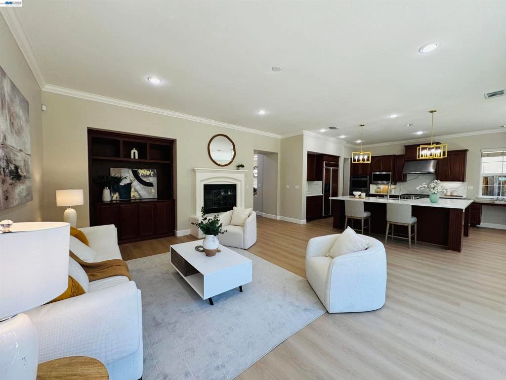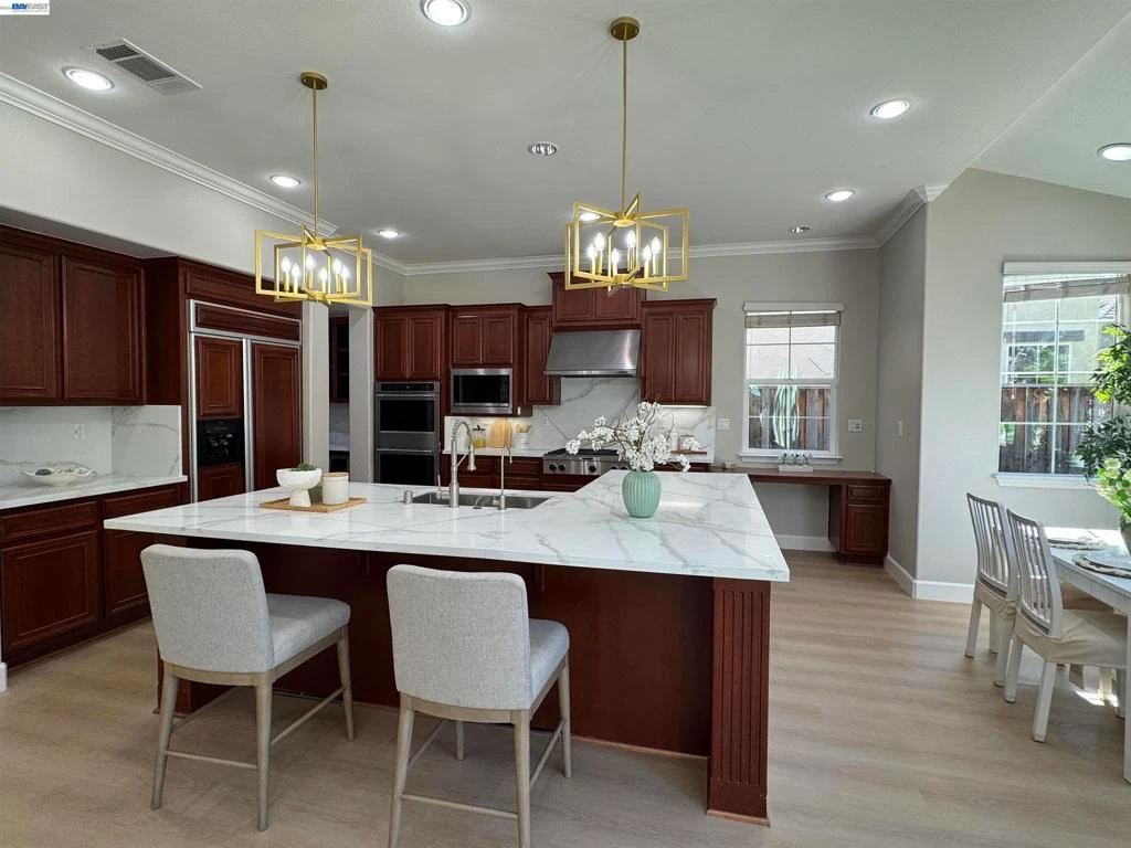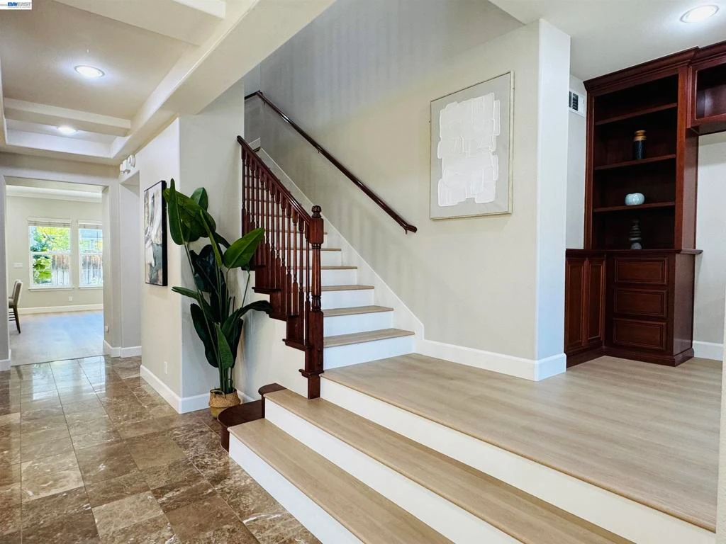 Welcome to this stunning East-facing home nestled in a peaceful cul-de-sac with no HOA, it offer an exceptional blend of space, comfort, and modern upgrades. This impressive residence features 3,828 sqft of living space, incl. a downstair bedroom ensuite perfect for guests or multi-generational living and 3 bedrooms upstairs.The home boasts an inviting open floor plan with 10 ft high ceiling downstairs and brand new LVP flooring throughout. The newly upgraded kitchen features new quartz countertops & backsplash, new farmer’s sink and faucet, two-zone wine cooler, and new double oven and built-in microwave. Custom embedded fridge, stylish pendant lights, and rich cherrywood cabinetry and custom built-ins throughout the home—including the media center in the family room, den/office, upstairs loft and the primary bedroom—provide both character and functionality. Morden bright LED lights in all bedrooms and bathrooms. Step outside to a professionally landscaped backyard with slate pavers, low-maintenance greenery, 3 car garage and water softener installed. Total over $200K+ upgrades. Walking distance to an award-winning elementary school and mins drive to top rated middle and DVHS. Walking to park and trail, easy access to major freeways and BART for convenient commuting.