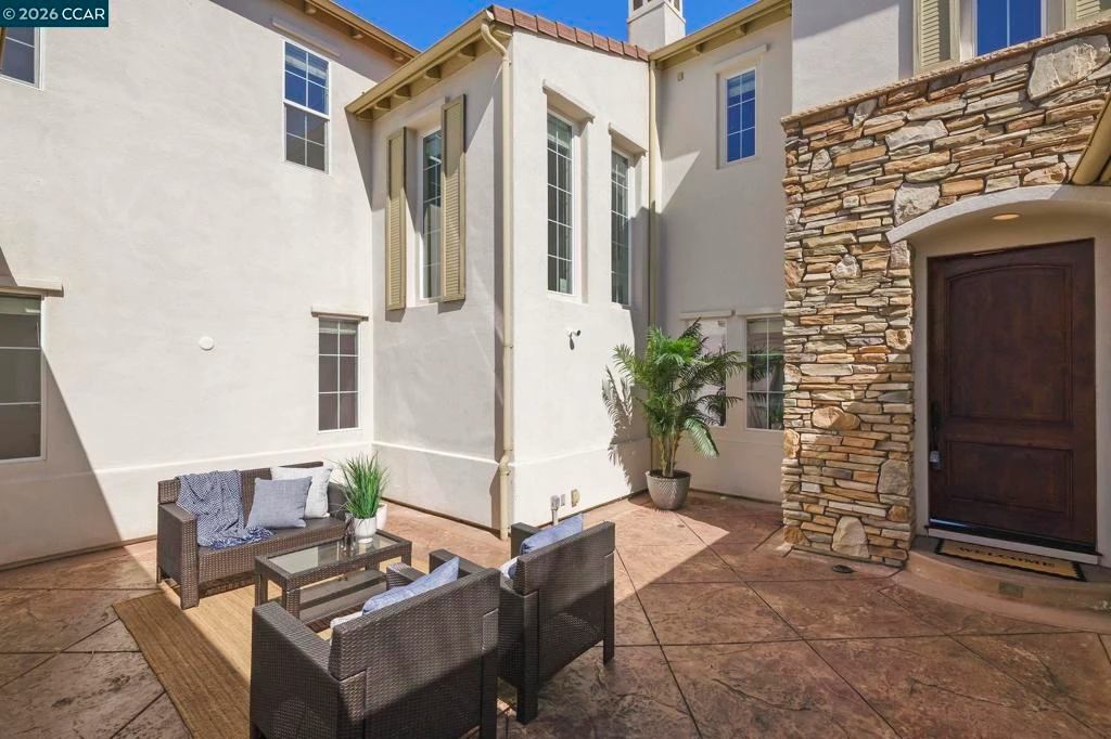 Spectacular Floor Plan, Lot & Location. Spacious home has 4079 sqft with 5 bedrooms and 4 ½ bathrooms. PLUS large bonus room on 1st level, PLUS office with view on 2nd level. PLUS courtyard and two balconies Large flat lot is 10,750 sqft. Open living/dining room has wood flooring & fireplace. Gourmet kitchen features brand new double oven & wine cooler. Kitchen opens to family room with fireplace. Primary bedroom has walk-in closet, jetted tub, and balcony with Mt Diablo view. Guest suite on main level is tucked away in a quiet & beautiful space. Near main park with play structures, tennis, basketball, baseball and soccer. Low HOA dues include community swimming pool.