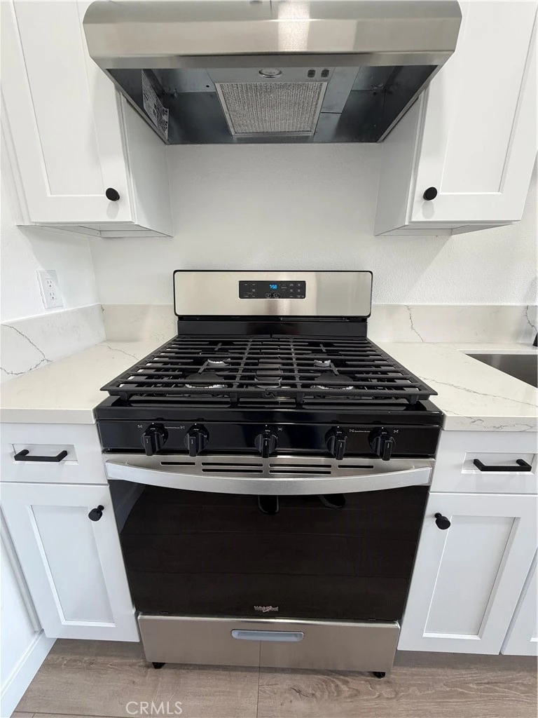 Charming, fully upgraded one-bedroom, one-bath lower-level unit with a private patio in the gated community of Bristol Place. This light and bright home has been completely renovated and freshly painted throughout. Upgrades include new laminate flooring and baseboards, dual-pane windows with blinds, glass sliding door, recessed lighting, a ceiling fan with remote, closet doors, and all new fixtures, outlets, and hardware. The updated kitchen features white shaker cabinets with soft-close doors and drawers, quartz countertops, a stainless-steel sink, gas range with hood and light, garbage disposal, and modern faucet—perfect for both everyday living and entertaining. The remodeled bathroom offers quartz countertops, a soaking tub, a new vanity with soft-close doors and drawers, updated shower fixtures, a single-flush toilet, new lighting, and a medicine cabinet. The unit includes one assigned carport space plus one additional unassigned parking space. Community amenities include a pool, laundry room, and outdoor cooking area with picnic tables. Conveniently located near shopping, public transportation, and easy freeway access.