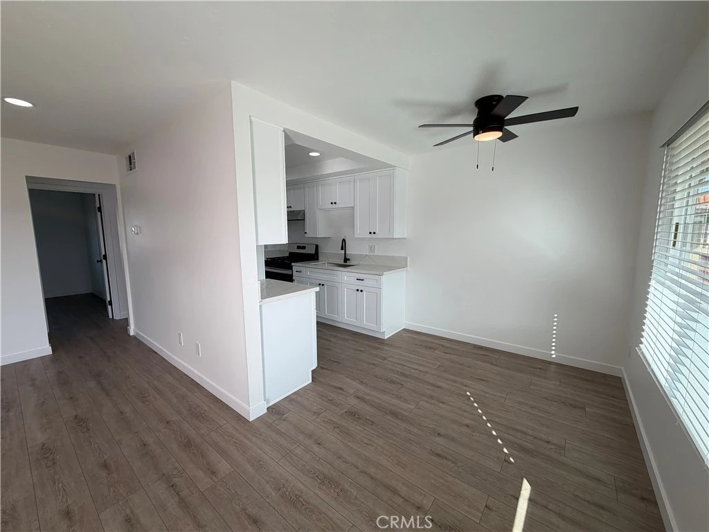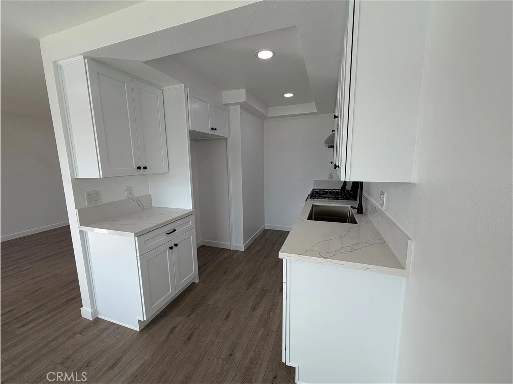 Charming, fully upgraded one-bedroom, one-bath upper-level unit in the gated community of Bristol Place. This light and bright home has been completely renovated and freshly painted throughout. Upgrades include new laminate flooring and baseboards, dual-pane windows with blinds, recessed lighting, a ceiling fan with remote, sliding closet doors, and all new fixtures, outlets, and hardware. The updated kitchen features white shaker cabinets with soft-close doors and drawers, quartz countertops, a stainless-steel sink, gas range with hood and light, garbage disposal, and modern faucet—perfect for both everyday living and entertaining. The remodeled bathroom offers quartz countertops, a soaking tub, new vanity with soft-close doors and drawers, updated shower fixtures, single-flush toilet, new lighting, and a medicine cabinet. The unit includes one assigned carport space plus one additional unassigned parking space. Community amenities include a pool, laundry room, and outdoor cooking area with picnic tables. Conveniently located near shopping, public transportation, and easy freeway access.