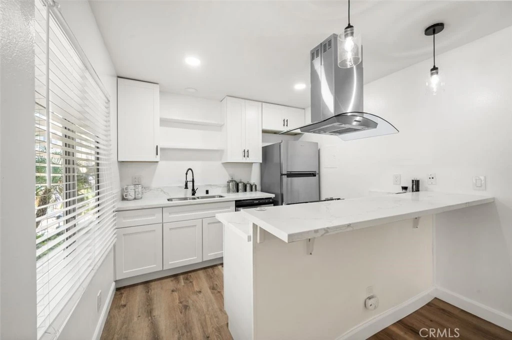 Ready to sell--it is your opportunity to enjoy this ground floor unit which is in a great location. It is a rare opportunity to own a home where tranquility meets modern living, including the soothing ambiance of a babbling brook that meanders right by your doorstep! The condo has been freshly painted and ready for you to move in. It features a beautiful and modern kitchen, with shaker cabinetry, stainless steel appliances, quartz counter tops and a breakfast bar. Over the range is a sleek overhead exhaust which not only enhances air quality but also serves as a stylish focal point in the kitchen. It seamlessly blends with the overall modern aesthetic of the condo. Experience a bright and inviting atmosphere with recessed lighting and custom fixtures that enhance the aesthetic appeal of every room. Step onto the new laminate wood floors that not only add warmth but also provide a durable and easy-to-maintain surface, combining style with practicality. Whether you're seeking warmth on a chilly evening or a refreshing escape from the summer heat, this condo's upgraded HVAC system is designed to cater to your every need. The condo was put back on the market--approximately a month ago and a leak was discovered under the kitchen sink. The condo has ben repaired, new flooring throughout, new lower cabinets in the kitchen, a new bathroom vanity. Any and all affected drywall was cut out and replaced. Your designated carport, #570, is just steps away from your condo, providing easy access. Enjoy the flexibility of an unassigned extra parking space for a second vehicle. The community has beautifully manicured grounds, a pool, spas, workout room and two laundry rooms. Enjoy the outdoors with close access to both Maybury Park and Cabrillo Park, perfect for leisurely strolls, picnics, or family outings. Experience the convenience of nearby shopping, including a grocery store within walking distance. Explore a variety of restaurants, entertainment options, and the Santa Ana Zoo, all just moments away. Easy access to the 55, 5 and 22 Freeways. Check out the video to see for yourself. This is a Probate Sale, with NO Court Confirmation required. Since it is a probate sale, it is being sold strictly ‘as-is’ with no repairs and no credits for repairs.