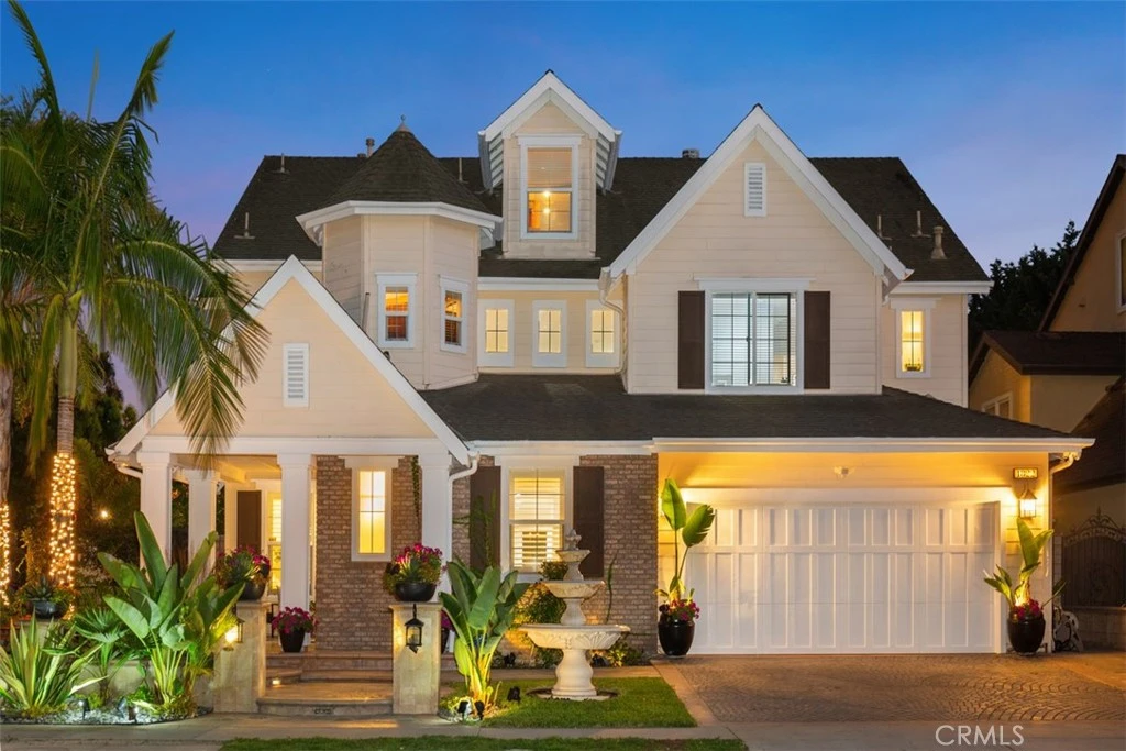 Located in a prestigious, guard gated community, across the street from the large community pool, spa and clubhouse, this elegant trophy home is a peaceful retreat. Set a short distance away from a multitude of options for shopping and dining, as well as local schools and parks, the home features an owned solar system, new hardwood floors and a spacious main floor bedroom suite/office with French doors. An inviting entry courtyard framed by several water features creates a welcoming atmosphere for this home, which includes a covered front porch, a two story foyer and an open living room. The nearby dining area has an adjacent wine room and glass doors that connect to the side yard, a private outdoor living space framed by mature hedges and a variety of fruit trees. Features include a full outdoor kitchen set under a gazebo, an expansive pergola spanning the width of the home and ample gathering space. Entertainers will love the wrought iron door in the entry courtyard that opens to the side yard; everyone will appreciate the open family room, with its built-in speakers and stone fireplace. A morning room with views of the backyard separates the family room from the kitchen, which has a center island, marble counters and a stone backsplash. As functional as it is beautiful, the kitchen also has a walk-in pantry, a butler’s pantry with a wine fridge and high-end appliances, including double ovens, a gas range and a built-in refrigerator. A sun-filled landing on the way to the second floor could be perfect for a music area or reading loft. The upper-level primary suite has a retreat, dual walk-in closets and a spa-like bath, complete with extensive natural stone, a Jacuzzi tub and a walk-in shower. Generous secondary bedrooms and an expansive upstairs bonus room add to the appeal. Refined with thoughtful attention to detail, the home includes a spacious laundry room, a full bedroom suite/service quarters, an infrared sauna, an EV charger in the garage two to four vehicles, smart thermostats, bidets, a water softener and a central vacuum. Pick an orange, mango or guava for your morning smoothie, walk across the street to the pool, stroll to South Coast Plaza, or select a favorite vintage from the wine room—the options are endless. With low HOA fees, no Mello Roos and a premium location nearby everything Orange County has to offer, this sophisticated home is the opportunity of a lifetime.