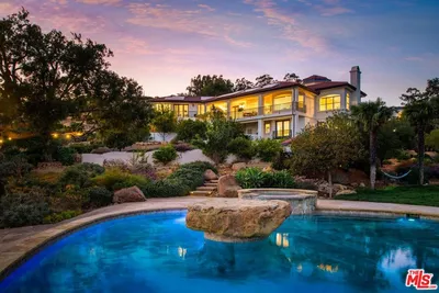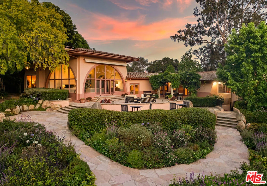 Positioned behind gates in the coveted enclave of Hope Ranch, this residence spans approximately 1.94 acres of beautifully landscaped grounds, offering timeless sophistication and exceptional comfort. The 6-bedroom residence includes two primary suites and an array of thoughtfully designed living spaces ideal for both relaxation and entertaining. Upon entry, the living room immediately commands attention as the focal point of the home, featuring soaring ceilings, a statement chandelier, and a striking fireplace. Large doors open to a grand stone terrace overlooking a cascading waterfall pool, lush gardens, and an expansive lawn - creating a seamless flow between indoor and outdoor living.A distinctive dining room connected directly to the kitchen offers captivating views of the backyard and effortless flow for gatherings. Just off the main living areas, a stylish den with a built-in bar offers the perfect setting for entertaining. Step outside the den's doors to discover a built-in fireplace with wraparound seating, ideal for intimate evenings under the stars. The primary suite is a serene retreat with a beautifully crafted fireplace and expansive windows that frame views of the surrounding landscape. The 3-car garage includes a temperature-controlled room for wine storage - an ideal amenity for collectors. Access to Hope Ranch's exclusive offerings, including private beach access, scenic riding trails, and tennis courts, further elevates this extraordinary lifestyle. Completing the estate is a beautifully designed 2-bedroom, 2-bath Accessory Dwelling Unit, built just over two years ago with its own driveway and address, offering stylish, self-contained accommodations with privacy and flexibility.