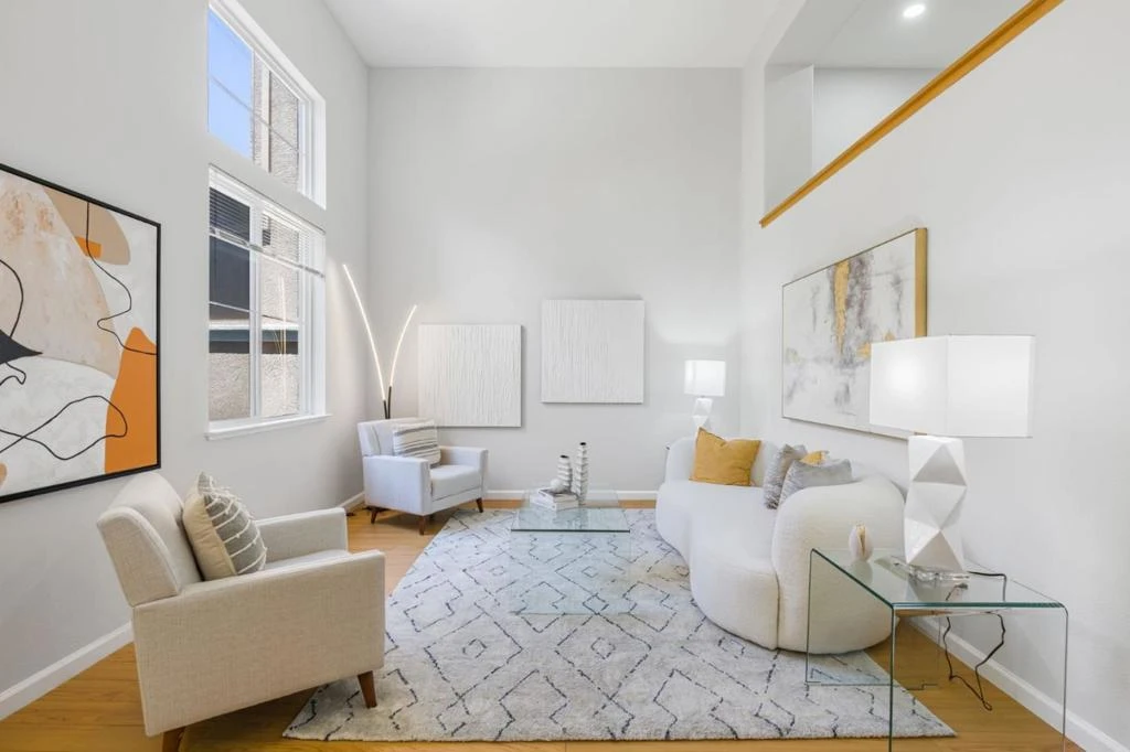 Welcome to this stunning 3 bedroom townhouse that features an open floor plan with a perfect blend of space, comfort, and contemporary lifestyle in Mission Garden gated community and with top rated Rivermark school. The formal living room features soaring 20-foot ceilings and tall windows with views of the front patio. Enjoy this open plan including a bright living area, a dining area, and updated kitchen with brand new quartz countertops, and freshly painted cabinetry. Upper level offers a generous master suite with walk-in closet, large, updated bathroom with dual sink vanity, soak-in tub and separate shower and new light fixtures. Brand new interior paint, double pane windows, recessed lights, laminate flooring, central heating and cooling & new light fixtures thru out. Laundry is located on the upper level for daily convenience, washer and dryer are included. Side by side 2 car garage with ample storage space. The home is conveniently located close to Rivermark Plaza, Levi's Stadium, Oracle & many Hi-tech companies, Santa Clara Library, park, walking trail and top-rated Don Callejon School. Easy access to freeways and expressways. Don't miss out on this move-in ready home in the heart of Silicon Valley! Enjoy the amenities like community pool and children's play area.
