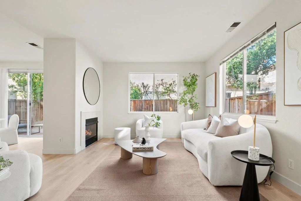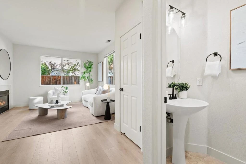 Fully remodeled and move-in ready single-family home in the desirable Mission Park community of Santa Clara. This beautifully updated two-level residence features brand new laminate flooring throughout and a stylish eat-in kitchen with new quartz countertops, modern cabinetry, sleek black hardware, and a charming garden window above the sink. Both upstairs bathrooms have been completely remodeled with brand new showers, vanities, tile floors, and modern finishes, creating a fresh and contemporary feel throughout the home. The spacious primary suite includes a large walk-in closet with built-in organizers, and one of the secondary bedrooms is generously sized, easily accommodating two twin beds and a desk. Enjoy outdoor living on the private paved patio, perfect for relaxing or entertaining. A fantastic location just minutes to Whole Foods at Santa Clara Square and Rivermark, walking distance to Levis Stadium, and a short stroll to the community pool and park, with easy access to major tech employers like Nvidia and Google, this exceptional residence delivers an unparalleled Silicon Valley lifestyle.
