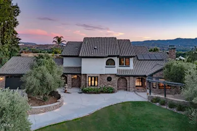 Enter this gated community to your new executive view home. You will find the epitome of luxurious living, offering a blend of elegance and modern convenience. As you enter you're immediately greeted by an ambiance of style and comfort. The expansive living spaces are adorned with high-quality finishes, including Travertine and newer hardwood floors, custom wrought iron staircase railing, crown molding, custom wood trim work and large windows with natural lighting. Elegant formal living room with vaulted ceiling is adjacent to the formal dining room. Handsome library with dual beveled glass doors and attractive built in shelving. The gourmet kitchen is a stand out feature of this property offering top-of-the-line stainless steel appliances, Viking 6 burner stove with custom range hood, wine refrigerator, ample white custom cabinetry, under cabinet lighting, marble/granite countertops, a spacious island with seating bar and dining area. The kitchen seamlessly flows into the comfortable family room with its cozy used brick fireplace, custom mantle and large sliders that bring the outdoors in. Relax and unwind in the downstairs primary suite with vaulted ceiling, sliding door access to the yard and private en-suite that feels like a spa with beautiful marble tile, large open walk in shower, jetted soaking tub, dual sink and vanities, a vanity desk and a dream of a walk in closet with custom built ins including a storage island. Also downstairs there's a guest bedroom and tastefully designed bath. Venture upstairs where you'll find a large bonus/game room with skylights perfect for entertaining! 2 more generously sized bedrooms each with balcony access, a utility/hobby room and a stylish bath with dual sinks and shower/tub combo. Large laundry room with sink, counter space and lots of storage. Step outside, and you'll find a private oasis for relaxation and recreation. The outdoor area boasts a pristine pool and spa with custom hardscape, a step up terrace with open lattice patio cover and raised hearth fireplace with seating bench, making it the ideal spot for unwinding. Multiple patio areas as well for various seating options for outdoor dining or gathering. For staying active, enjoy the paddle tennis court/pickle ball & sport court. The crowning gem is the breathtaking canyon views that serve as a stunning backdrop to your outdoor experience! Newer owned solar, lots of storage in the attic, RV parking, utility shed & 2.5 car garage with workshop too! This distinguished home offers an unparalleled living experience.