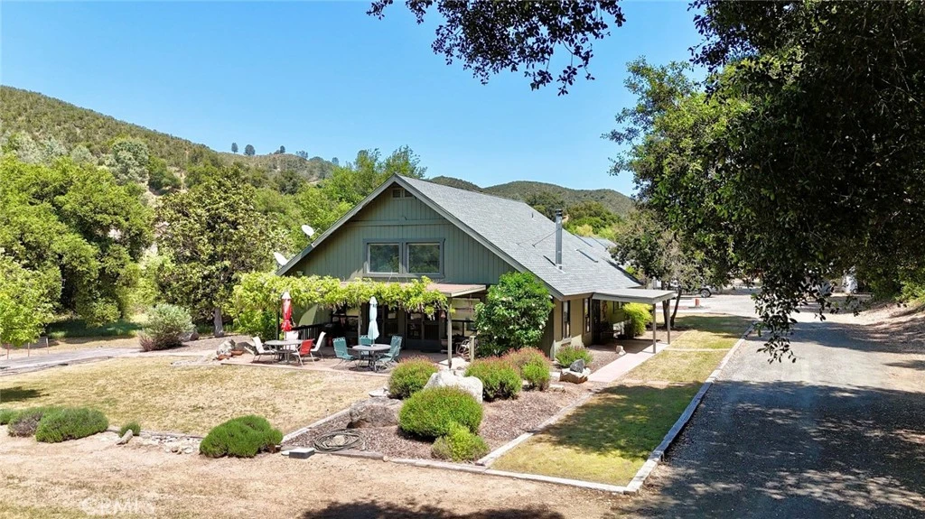 Imagine owning a serene 23± acre ranch nestled in the beautiful oak-covered hills of Santa Margarita. This unique retreat offers a rare combination of privacy and convenience, being just 8± min. to Hwy. 101 while feeling worlds away. The land itself is a true gem, featuring a seasonal creek and pond, producing orchard, plus direct access to 320± acres of BLM land perfect for outdoor adventures like hiking, nature watching, and hunting. You'll appreciate the private, park-like setting with established shade trees, abundant wildlife, and plenty of room to explore. The property boasts two residences, offering incredible flexibility. The main house is a well maintained A-frame with 1,880± sq. ft.. A wisteria-draped entry welcomes you into the bright and airy open floor plan with vaulted open-beam ceilings. The spacious kitchen features granite countertops, a large center island with seating, a walk-in pantry, and clever storage solutions. For your convenience, the refrigerator, washer, and dryer are included. Enjoy the cozy wood stove, supplemented by ceiling fans and newer central heat and air conditioning. There are two bedrooms, a loft, two bathrooms, and a walk-in attic providing ample storage. The primary suite is a true retreat with a walk-through closet, a wheelchair-accessible shower, and French doors that open to a lush, pergola-covered patio adorned with trumpet vines. The second residence is a well-maintained mobile home with its own separate address and driveway. Offering 1,040± sq. ft., it features two bedrooms, 1½ bathrooms, granite countertops, HVAC, and laminate flooring. Included is a fenced dog yard and pleasant outdoor seating spaces. Additionally, you'll find several useful outbuildings, including a detached 3-car garage with workshop space that has been certified by the health department , an additional carport, and a substantial Quonset hut (1,000± sq. ft.) ideal for equipment or extra storage. There are three kennels with enclosed runs already in place. The orchard offers a variety of trees including walnuts, pomegranates, persimmons, plums, peaches, and apples. A reliable private well ensures a quality water supply. This unique offering presents a wonderful opportunity for multi-generational living, generating rental income, or simply enjoying the peace and quiet of a spacious and beautiful setting. Properties that offer this level of tranquility, usability, and proximity to town are truly rare. Be sure to view the 3D videos.
