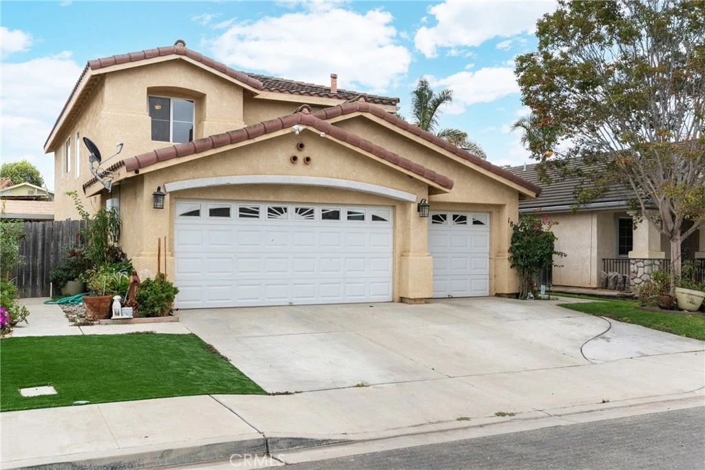 This beautifully maintained two-story Spanish-style home, built in 2001, and with 2,791 square feet, offers 5 spacious bedrooms and 4 full bathrooms, including a luxurious master suite with a fireplace, walk-in closets, master bath with dual sinks, and a garden tub with a separate shower, plus a second master bedroom with its own private bath. Designed for comfort and functionality, the home features a formal living room with fireplace, separate family room, dining room, indoor laundry, and an attached 3-car garage with exterior solar lights. The upgraded kitchen boasts custom cabinetry, Quartz countertops, a center island, filtered water-leased, and stainless steel appliances. Additional upgrades include tile flooring in the kitchen and dining area, laminate flooring throughout the rest of the home, custom interior paint, central heating and air conditioning, and a fully paid Tesla solar panel system to be transferred through escrow. The exterior is equally impressive with professionally landscaped front and back yards, a built-in BBQ pit, wet bar, and a variety of fruit trees, plants, and irrigation system with timer—perfect for entertaining. Located in the desirable Northeast Santa Maria area, this home is close to schools, parks, and offers convenient freeway access.