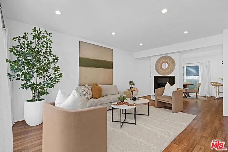 Light and bright 2-bedroom 2.5-bathroom townhouse-style condo in prime Santa Monica with great floorplan, close to many shops and restaurants. Some upgrades include newer wood-type flooring, recessed lighting, newer powder room vanity, large kitchen with garden window, full sized laundry and some stainless-steel appliances. Nice private patio off of the living room plus an additional balcony for more outdoor space, newer dual paned windows for improved insulation and quiet living, and lots of storage throughout. The downstairs has a multi=purpose room that can be used as an office/den/formal dining room. Large 1/2-bathroom downstairs. The two bedrooms upstairs are both ensuite with good-sized bathrooms, and the primary bedroom has extra closet space on two walls. very small building with only 6 units, with reasonable HOA fee and this beautiful complex underwent a $180,000 renovation not long ago. Two side-by-side, private parking spaces in a gated underground garage plus additional storage in garage, central air conditioning and forced air heat, and is located in the famous Santa Monica school system.