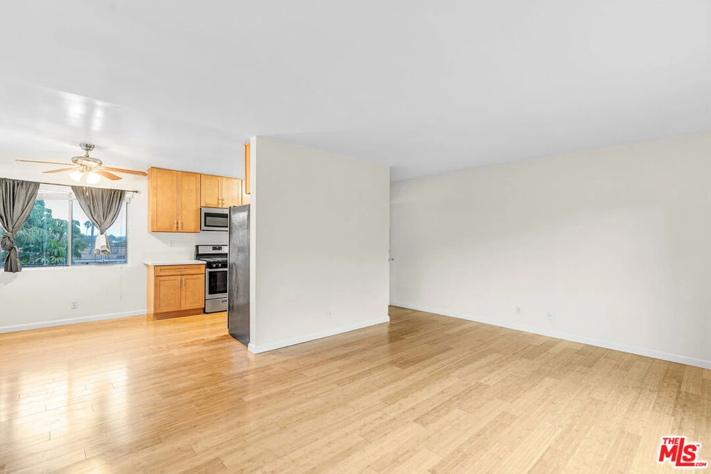 Welcome to the most delightful identity crisis in LA: Right on the border of Santa Monica and Sawtelle you truly get the best of both worlds! Beachy, laid-back vibes to the west; ramen row &boba gems to the east. Basically, this location is living its best lifeand so will you. Upstairs and away from the fray, this top-floor one-bedroom feels bright, breezy, and totally yours. The wood floors shine. The windows stretch wide. And the vibe? Hard to beat! The kitchen is big enough to film your cooking show debut with loads of cabinet space, quartz counters, and stainless steel everything. Grab your favorite mug, head to the window nook, and sip your morning brew with a view of the community courtyard. The bedroom has a long, leafy view and a legit walk-in closet that can handle your entire wardrobe plus your secret stash of impulse-bought Halloween costumes. The bathroom is clean and classic, with crisp tile and a full tub setup, because bubble baths are self-care, and you deserve them. Don't forget the building perks: a huge shared sun deck that's perfect for catching rays or catching up with neighbors, and... there's a pool! Your summer just got an upgrade. You're nestled in a peaceful, gated community that feels private but puts you smack between Santa Monica, Sawtelle, and everything worth Instagramming. Surf in the morning, sushi at night, sunshine always.