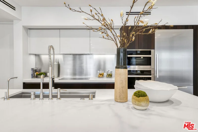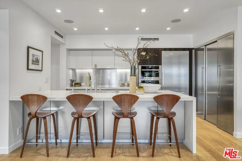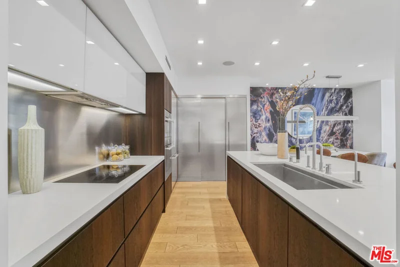 Elevated Coastal Living | 515 Ocean Avenue, Residence 706S | Santa Monica Discover refined coastal luxury in this fully reimagined designer residence on iconic Ocean Avenue, ideally situated in Santa Monica's coveted North of Montana enclave directly across from Palisades Park. Enjoy sweeping ocean and mountain views along with effortless walkability to the city's premier dining, shopping, and beaches. Thoughtfully curated with exceptional craftsmanship and high-end finishes, the home features custom Italian cabinetry, French white oak flooring, electronic shades, and a comprehensive Control4 smart home system. The chef's kitchen is equipped with top-tier Miele appliances including an induction cooktop, steam and conventional ovens alongside a Galley sink and Dornbracht fixtures, seamlessly integrated into a clean, modern aesthetic.Fleetwood floor-to-ceiling doors bathe the interiors in natural light and open to a private balcony accessible from the living room, second bedroom/office, and primary suite creating a seamless indoor-outdoor flow.The primary suite offers dual custom Italian closets, direct balcony access, and a spa-inspired marble bath with an oversized shower, custom vanity, and Toto bidets in both bathrooms. The second bedroom, currently styled as an office, is positioned across from a beautifully appointed bath featuring a deep soaking tub.Additional amenities include two garage parking spaces with EV charging, in-unit laundry, secure storage, and access to full-service building offerings: 24-hour concierge, valet, fitness center, pool, spa, and security. Earthquake retrofitting and building upgrades are in progress, with all current assessments paid in full (buyer to verify). A rare opportunity to own an exceptional coastal residence in one of Santa Monica's most sought-after locations.