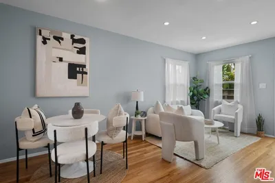 Drive down a palm lined Santa Monica beach street, breathe the ocean air, and arrive at a polished modern farmhouse inspired retreat designed for effortless living. Inside, a serene private sleeping suite offers the comfort and function of a true bedroom, while thoughtful upgrades like a smart bidet, in-unit laundry tucked into a walk-in cedar closet, and a chef's kitchen with fully integrated appliances elevate everyday comfort. Two panel-ready refrigerators, a built-in freezer, a concealed dishwasher, and a hidden pull-out disposal compartment vanish behind custom cabinetry for a refined, furniture quality finish. Sunlight fills the space through patio doors, linking the open living and kitchen areas to easy mornings and spontaneous evenings out. Quietly set as the final residence at the back of the building, it features both a welcoming front entrance and a discreet direct to garage exit, with secure parking just steps from your door for seamless comings and goings. A stone's throw from Montana Avenue and moments from the beach, this turnkey hideaway makes settling into Los Angeles feel immediate. This is truly the best value in all of Santa Monica.