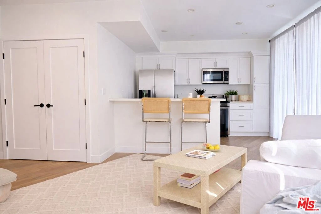 Tucked just a half block off coveted Montana Avenue, this beautifully updated first-floor residence offers the perfect blend of style, convenience, and modern living. Flooded with natural light, the open layout showcases brand-new wood flooring, recessed lighting, and elegant crown molding throughout. The modern kitchen features sleek shaker cabinetry, stainless steel appliances, and a clean, functional design perfect for easy weeknight meals or hosting friends. Thoughtfully configured as a smaller 2-bedroom that lives like a spacious 1-bedroom plus dedicated office or flex space, this layout is ideal for today's work-from-home lifestyle giving you separation between living and productivity without sacrificing comfort. Both bathrooms have been fully renovated with classic subway tile, new shower doors, and updated fixtures, delivering a fresh, spa-like feel. Enjoy the convenience of a dedicated private laundry room just steps from your front door, making everyday living seamless while maximizing interior space. Located in one of Santa Monica's most desirable neighborhoods, you're just moments from Montana Avenue's best cafes, fitness studios, restaurants, and boutiques perfect for an active, walkable lifestyle. A rare opportunity to live, work, and unwind in one of LA's most sought-after locations.