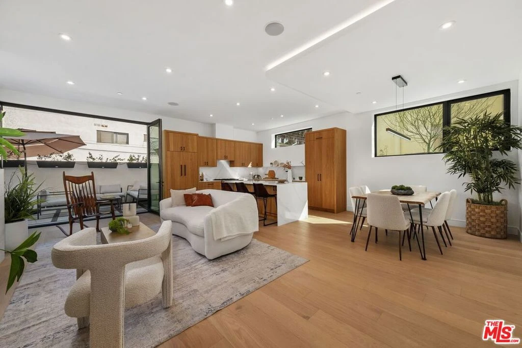 Come and experience this gorgeous, brand new construction, 3 bed + extra-large family room + 3 bath + large living room , townhome in the coveted WilMont neighborhood of Santa Monica. Just 10 blocks from the beach & 1.5 blocks to the trendy shops and restaurants of Montana Ave., this elegant townhome built with the finest of materials & finishes, boasts a large living room, dining and two, en-suite bedrooms on main level. Lower level boasts the extra-large family room, office nook, 3rd bedroom + bath, laundry & good-size patio. Among the state-of-the art features of this townhome are; stunning wide-plank, white oak flooring throughout, custom fireplace, nearly 10 foot ceilings, 8 foot interior, solid core doors, built-in speakers & direct entry to lower-level parking (with EV charger connection ready). The open, gourmet kitchen has a full complement of high-end, paneled appliances, quartzite countertops, European custom cabinetry & high-end Summit wine fridge. Jenn-air stainless steel gas stovetop, exhaust hood, wall oven & waterfall island round out light and airy, gourmet kitchen. Natural light floods the living, kitchen & dining areas with their high ceilings & extra tall accordion doors which create a full wall opening from living to patio. This large, private patio features combination of fine Italian tiles and stepping stones - perfect for BBQ'ing & sipping wine in the evenings. Livingroom features a gas fireplace with Jerusalem, bush-hammered stone with wiring for tv above (to accommodate up to 65" flat screen). The primary suite includes wiring for a chandelier, wired for flat-screen tv, professionally organized, walk-in closet, and a sumptuous primary bath with dual vanity & large walk-in shower and a soaking tub. This exquisite property includes professionally organized closets, dual-zoned heat & air conditioning with linear diffusers & individual tankless water heater. An elegant Mahogany front entry door with Jerusalem stone, integrated security surveillance system for the building and individual units. Elevator from garage to exterior entry level. 2 side by side parking spaces. Click on "docs" above for a floorplan.