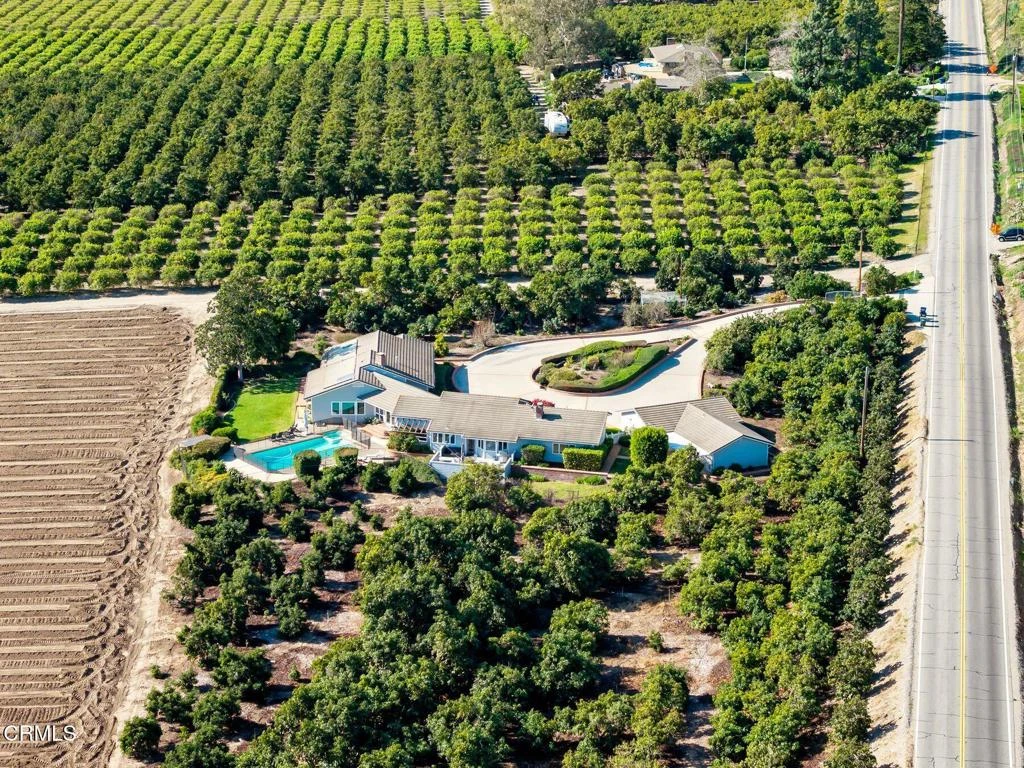 Ideally situated equally between downtown Santa Paula and East Ventura, this exceptional gated ranch estate sits on nearly 44 acres, offering rare privacy, expansive space, and everyday convenience. Upon arrival, the home welcomes you with immediate views of the private pool and spa, framed by sweeping avocado and lemon groves beyond. The residence is a stylish midcentury home featuring three generously sized bedroom suites, each with its own en-suite bath, plus two additional guest bathrooms. The expansive primary suite is a true retreat, complete with a private office, dedicated laundry room, dual walk-in closets, and a spa-inspired bathroom.Designed for both comfort and entertaining, the open floor plan seamlessly connects the spacious kitchen--featuring a center island and grove views--to a large family room with a breakfast bar, ideal for gatherings. An executive office, fully paneled in rich cherry wood, showcases a striking see-through fireplace shared with the family room. Formal living and dining rooms further enhance the home's flowing layout. Recent upgrades include new interior paint, flooring, septic system, and pool heater. French doors and oversized windows open from the foyer to the resort-style pool area, creating effortless indoor-outdoor living.Attached to the three-car garage is a detached one-bedroom, one-bath ADU with its own private patio--perfect for guests, extended family, or a private home office. The professionally managed avocado and lemon groves provide a picturesque setting and authentic ranch ambiance. Additional farmhouse structures and outbuildings further support the land's versatility. This is a rare opportunity to lease a private ranch estate offering modern comforts, abundant acreage, and a prime location--just 10 minutes from East Ventura and 10 minutes from downtown Santa Paula. Tenant to pay all utilities except pool service, gardener, and trash.