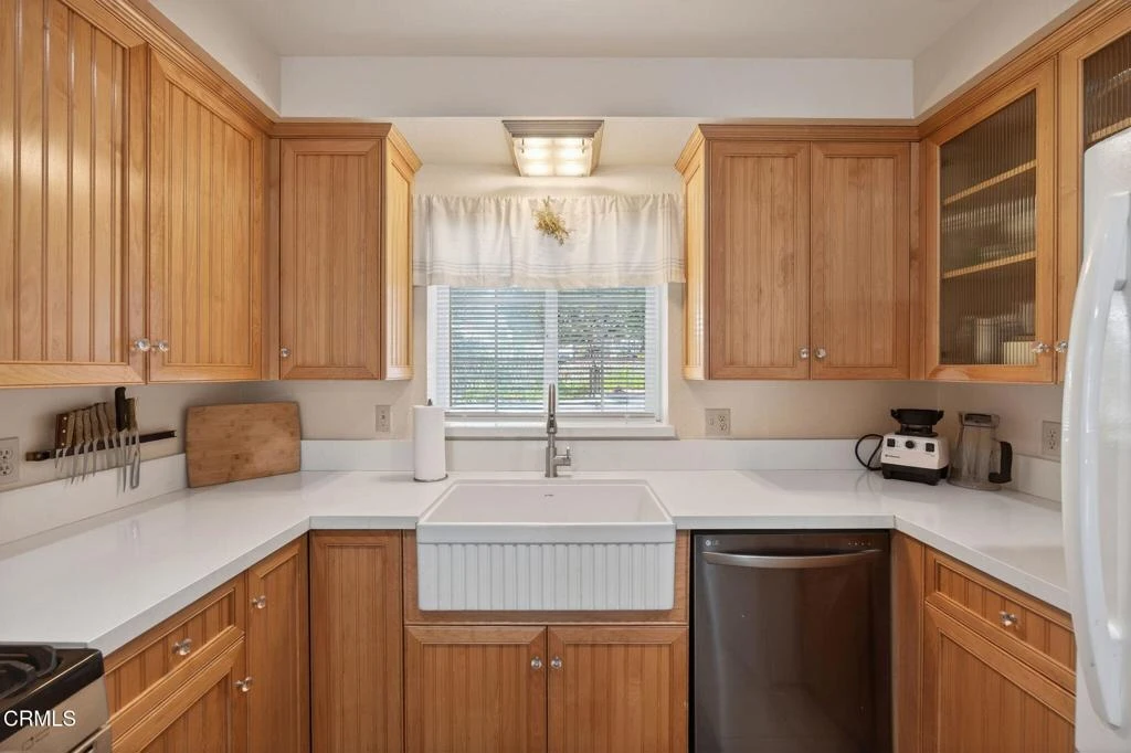 Charming home, features 3 bedroom, 2 bath main residence along with a detached garage that includes an additional room and full bathroom. Upgrades throughout, including quartz kitchen countertops, custom built cabinetry, and hardwood flooring.Energy efficient dual pane Pella windows, HVAC system, and a newer roof. The 30x20 garage offers expanded space ideal for storage, hobbies, or projects.The spacious primary suite, complete with a cedar lined walk in closet and direct access to the patio. The en suite bathroom is thoughtfully designed with Swanstone shower walls, a 300 pound capacity built in bench, three shower heads, dual handicap bars, and a matching Swanstone vanity countertop. The bathroom also provides convenient access to the garage.The kitchen with custom cabinetry, quartz countertops, a country style farmhouse sink, and pantry. Hardwood floors flow throughout the home, complemented by a cozy gas fireplace in the living room.The detached 30x20 garage is longer than standard and features 220V power, including a welding outlet, 220V dryer hookup, overhead storage, and an approximately 10x20 separate room, and full bathroom with a private entrance.Outdoors, the fully irrigated yard operates on four timer controlled systems and includes a powered shed, dog kennel, and 220V power at the outdoor table with two additional outlets. Mature landscaping surrounds the property, along with an impressive variety of fruit trees including Fuerte avocado, Valencia orange, Oro Blanco grapefruit, Meyer and standard lemon, Mariposa and Satsuma plum, olive, three Black Mission/Turkish fig trees, lime, apricot, and navel orange. A fragrant jasmine hedge frames the primary bedroom window.