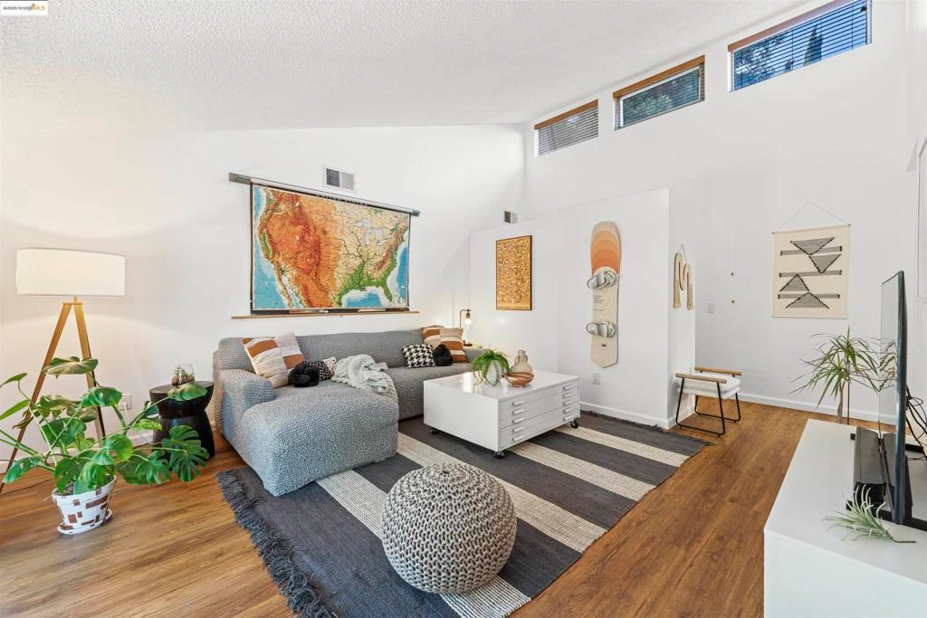 Tucked on a quiet cul-de-sac, this bright single-level 3 bed 2 bath home features 14’ vaulted ceilings, a remodeled kitchen and baths, new flooring, fresh paint, and modern fixtures. The converted garage adds a bonus space to be used as a family room, huge home office, or kids playroom that also has a workshop attached which also houses the in-unit laundry. Enjoy the outdoors in a private yard with pergolas, towering redwoods, and extra grassy space. The community includes pools, playgrounds, BBQs, and direct Santa Rosa Creek Trail access. Low HOA dues and easy highway access. OPEN HOUSE 1-3pm 09/21!!
