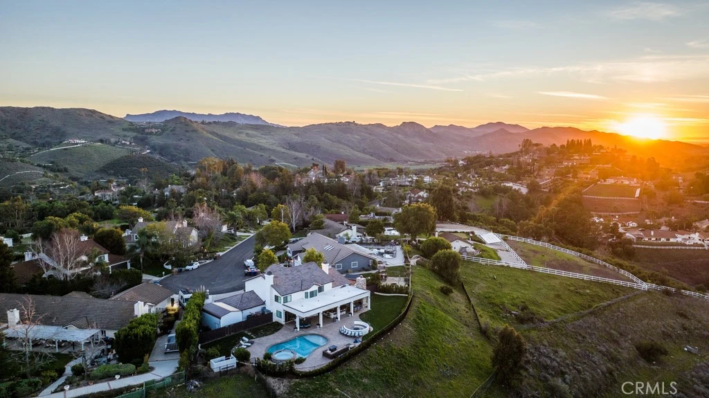 ** AN ABSOLUTE MUST SEE ** Stunning and Highly desirable Bridlewood Estate in Beautiful Santa Rosa Valley. A true pinnacle of luxury living. Nestled on a cul-de-sac, on just over 4 acres. Embrace breathtaking views of infinite blue sky's that reach the Channel Islands and Reagan Library. Walking distance to Santa Rosa Technology Magnet School, serves students from Transitional Kindergarten (TK) through 8th grade. Owner has spared no expense in the "Complete Remodel" of this Spectacular Mediterranean Hacienda. Boasting over 500K in renovations, to include new concrete tile roof, new upgraded windows/doors, new custom wooden garage doors, hardwired alarm system, smooth exterior stucco finish, upgraded electrical panel, porcelain tile and luxury vinyl flooring, completed new fencing throughout, drought tolerant landscaping/artificial turf, stamped concrete walkway, replaced septic tank, innovative new pool/oversized spa, outdoor entertainment patio, new HVAC system, etc....with the abundance of improvements its nearly impossible to list them all! The formal foyer is framed by an exquisite custom wrought iron front door and luxurious spiral staircase. Bright and open floor plan that defines the spaciousness of this gorgeous home, creating a welcoming "atmosphere throughout." Enjoy cooking while entertaining in your fresh gourmet kitchen. This culinary space exudes pure elegance, with top-of-the-line appliances, commercial stove, dual door stainless refrigerator, quartz counter tops, quality custom cabinetry complete with a generous walk-in pantry. The formal dining and family room both boast large sliding doors, to bring the outside in! Beautiful Master Suite offers a spacious retreat, providing pure elegance and sophistication. Relax and enjoy the serenity of panoramic views while soaking in your luxurious tub. Step out into the "ultimate entertainers" backyard, complemented by a sparking pool and large spa. Gather around the warm fireplace or Hollywood style fire pit for an inviting evening of ambiance while roasting marshmallows. Delight and host your Family and Friends in the fully equipped bbq island and wet bar. A rare opportunity to own a" Private Oasis", with endless majestic canyon and mountain views. Indulge the ultimate luxury lifestyle of elegance and solitude. Bonus- the large side-yard shed is included! This extraordinary property is a "must see" to fully appreciate the extensive improvements and enhancements. An incredible place to call home!