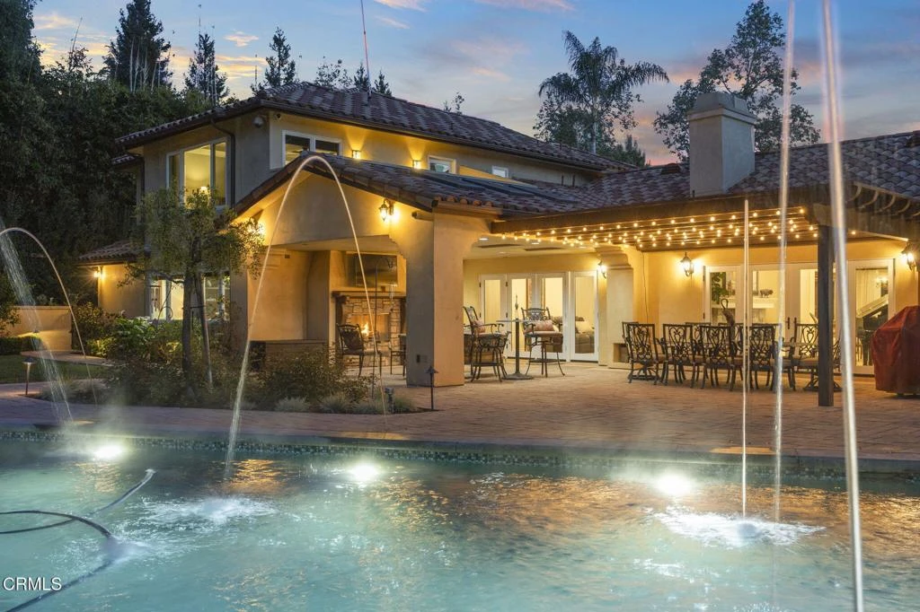 Nestled in the prestigious Santa Rosa Valley, this stunning estate offers nearly 5,000 sq ft of luxurious living space, featuring 6 bedrooms, 6 bathrooms, an office, and a den. Set on a sprawling 8-acre compound, the property includes equestrian amenities, a thriving orchard with over 100 avocado trees, and a variety of fruit trees alongside a vegetable garden. Conveniently located just half a mile from the highly-rated Santa Rosa Technology Magnet School and a mere 45-minute drive to Los Angeles, this home combines accessibility with serene privacy.Ideal for multi-generational living, the residence showcases two spacious primary suites: a serene retreat upstairs and a full-sized suite downstairs, along with a junior suite featuring an ensuite bathroom. The exterior of the home harmonizes modern luxury with self-sufficiency. The back of the property reveals an impressive equestrian facility, complete with two individual stalls, a tack room, storage shed, and direct access to miles of bridle trails. There's also ample space for a large trailer and a dedicated arena. The beautifully landscaped grounds offer an inviting outdoor living area, complete with a pool and spa. The upgraded pool features a mini pebble-tech finish, an ionized freshwater system, and stunning water features, all surrounded by manicured gardens that evoke a luxury resort ambiance.Additionally, a private vineyard with approximately 700 Syrah grape vines adds to the property's charm. For recreation, enjoy the Sport Court suitable for basketball or pickleball, as well as RV access. A family-friendly snake screen surrounds the entire perimeter, ensuring peace of mind.Inside, no detail has been overlooked. The open floor plan is perfect for entertaining, featuring a chef's kitchen with high-end appliances and Quartzite countertops. Milgard casement windows fill the space with natural light, enhancing the mostly single-story layout for ease of living and entertaining.Designed for comfort and security, the estate includes a 25 KW house generator and owned solar panels for the home and pool, complete with individual inverters. A comprehensive surveillance system with DVR and remote access, along with a commercial-grade alarm system, ensures safety and peace of mind.This property embodies the ultimate secluded family oasis in Santa Rosa Valley, offering luxury, comfort, and an array of amenities for a vibrant lifestyle.