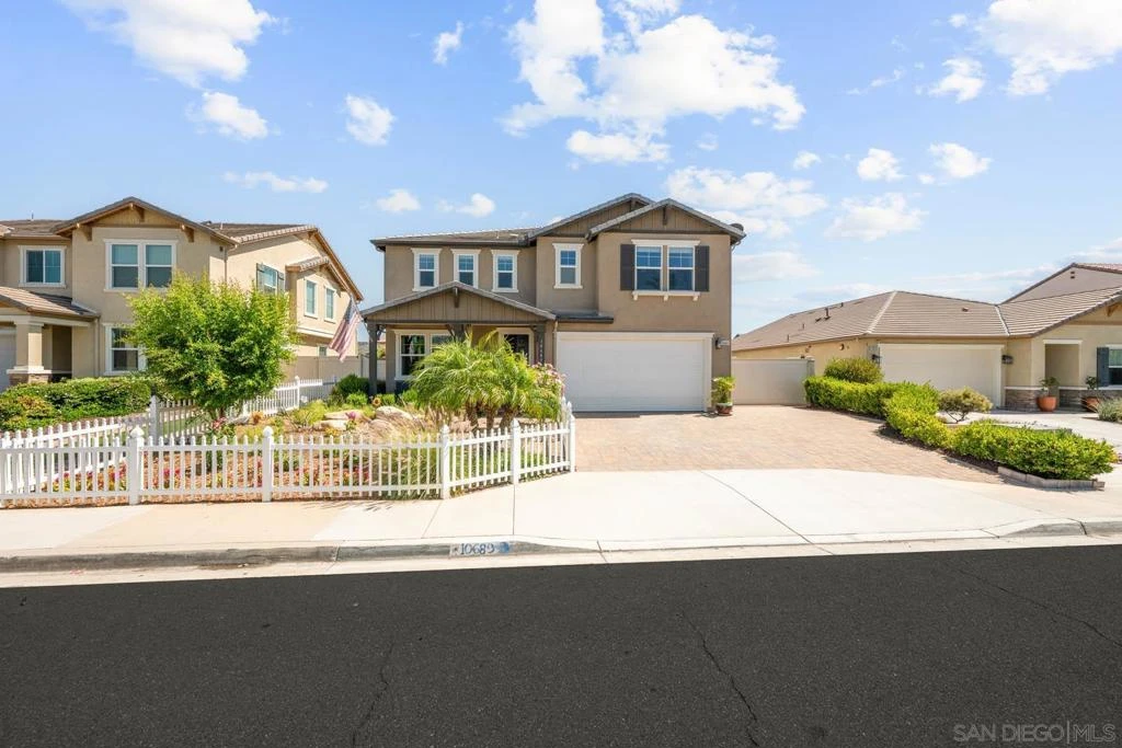 Welcome to 10689 Braverman Dr, a stunning 4 bed + loft, 3.5 bath home in the highly sought-after River Village community of Santee. Built in 2017, this 2,850 sq ft residence offers an ideal layout with a full bedroom and bathroom on the first floor—perfect for guests or multigenerational living. The open-concept design features hardwood floors throughout, a spacious living area with built-in speakers, and a modern kitchen that flows effortlessly for everyday living and entertaining. Every bedroom boasts its own custom-built walk-in closet, offering exceptional storage and organization. The primary suite is a true retreat with ample space and a spa-inspired bath. Step outside to a beautifully landscaped, spacious backyard featuring a charming pergola, tranquil fountain, mature fruit trees, and RV parking with an automatic gate—an entertainer’s dream. The home also includes a fully paid-off solar system, EV charger set up, water filtration system, and low HOA dues. Ideally located just one block from Hill Creek Elementary and close to parks, only two blocks from the Walker Preserve Trail and San Diego River, shopping, dining, and freeway access. River Village is a peaceful and well-maintained neighborhood known for its community feel, newer construction, and convenient location. This home is the perfect blend of comfort, efficiency, and lifestyle—don’t miss out!