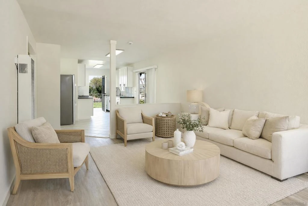 Welcome to this charming 3-bedroom, 2-bathroom home located in a lovely sought-after neighborhood in Santee! This well-maintained property needs to be seen to fully be appreciated. Spectacular views from inside and out, with breathtaking sunsets! Inside you'll find a bright and inviting floor plan, with new vinyl plank flooring. The primary bedroom offers a peaceful retreat with its own private bathroom, while two additional bedrooms provide flexibility for families, guests, or even a home office. The kitchen offers plenty of natural light, with gorgeous views that are enhanced as you step outside! Conveniently placed rear door and patio slider allows for indoor-outdoor entertaining. With this shotgun-style layout, a beautiful breeze is always welcomed! The backyard with covered patio provides a great space for relaxing, gardening, or hosting gatherings while enjoying spectacular views! Whether savoring a quiet morning coffee or an evening with friends, this outdoor area is full of possibilities. The double door gate makes parking of a RV/boat/camper/trailer/etc a breeze. This neighborhood is one of a kind, and walking distance to the recently renovated Shadow Hill Park, with trails, tennis and basketball courts, covered playground and picnic area. Don’t miss this wonderful opportunity to own a beautiful home in one of Santee’s most desirable communities! This turnkey property shines pride of ownership. Some photographs have been virtually staged.