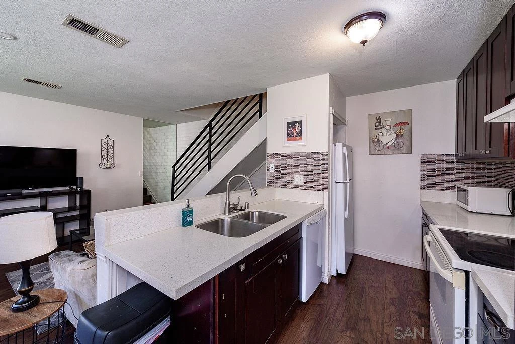 This charming 2-bedroom, 1-bathroom townhome-style condo offers comfortable living in a highly convenient Santee location just one block from Santee Town Center. This two-story unit features a functional and open main-level layout ideal for everyday living. The kitchen and living areas flow together, creating a welcoming space with abundant natural light. Bedrooms are privately located upstairs and offer generous closet space, including a walk-in closet. The home has been well maintained. Community amenities include a gated in-ground pool and greenbelt areas. Laundry is located near the driveway and shared with only three neighboring units. Parking includes one covered space with storage plus one additional driveway space, with guest parking nearby. HOA covers water, trash, roof maintenance, landscaping, and common area upkeep. Conveniently located near shopping, dining, trolley access, and the 52 freeway. An excellent opportunity for first-time buyers, downsizers, or investors looking for value and location in the Mission La Vega community. Mission La Vega is located in the heart of Santee, one of East County’s most convenient and growing communities. Residents enjoy close proximity to Santee Town Center, Trolley Square, Sharp Rees-Stealy Medical Center, Costco, Target, local restaurants, coffee shops, and everyday retail. Easy access to Highway 52 provides a direct commute to central San Diego, Mission Valley, and coastal areas. Santee offers an active outdoor lifestyle with nearby Mission Trails Regional Park, Santee Lakes Recreation Preserve, Walker Preserve Trail, and multiple community parks and sports fields. The city is known for its well-maintained public spaces, community events, and suburban neighborhood feel while remaining connected to the greater San Diego area via the Green Line Trolley. The Mission La Vega community features a gated in-ground pool, maintained greenbelt areas, and convenient guest parking. HOA includes water (hot and cold), trash, roof maintenance, exterior upkeep, landscaping, and common area maintenance, providing simplified ownership and predictable expenses. Buyer to verify all information including HOA coverage, square footage, and community amenities prior to close of escrow.