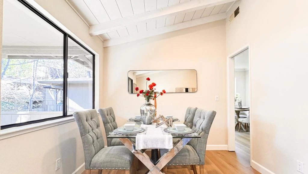 Enjoy the convenience of living in highly sought after downtown Saratoga! Nestled within a peaceful, beautifully maintained community, this spacious 2 bed/2 bath condominium offers a rare 2-car garage and a comfortable, functional layout. Inviting interior spaces have been completely refreshed with brand NEW wide-plank vinyl flooring, carpet, and interior paint throughout. The living room showcases vaulted open- beam ceilings and a cozy fireplace, a formal dining area and bright kitchen with granite tile counters and a charming breakfast nook. Both bedrooms generously sized with ample closet space, and the home includes a full-size washer/dryer. Enjoy outdoor living from the large, covered balcony with serene treetop views, while the primary suite features its own private covered balcony. Located in a quiet complex with beautifully landscaped grounds and a community pool, just moments from downtown Saratoga shops, cafés, dining, wine tasting, schools, and scenic walking paths. Highly Rated Schools: Saratoga Elementary, Redwood Middle, and Saratoga High. Upstairs unit.