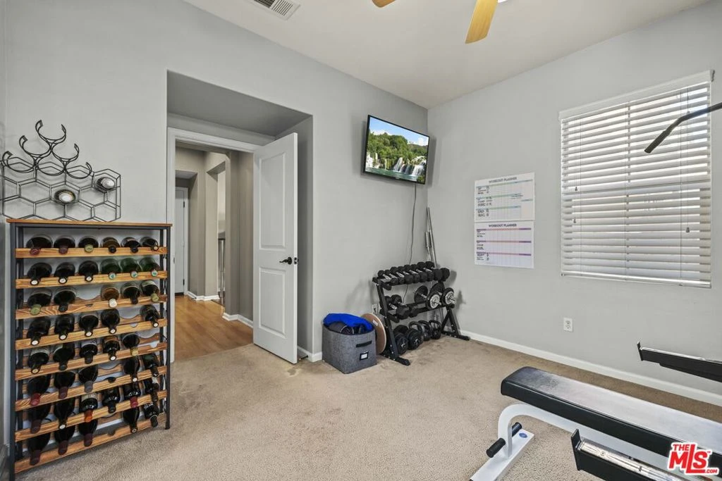 Gorgeous 2-story home in the desirable Villa Metro community. This thoughtfully designed floor plan features a first-floor bedroom and full bath, plus a den/officeideal for guests or flexible living.The second level offers an open-concept family room, dining area, and beautifully upgraded kitchen with granite countertops, stainless steel appliances, dark wood cabinetry, and breakfast bar. The bright primary suite includes an attached bath with dual sinks. Additional features include a 2-car attached garage, laundry area, and a mix of carpet and hardwood flooring throughout. Prime Saugus location close to shopping, dining, and commuter access. HOA $332.38/ Month MelloRoos $1,769/ Annually - Financing note: Due to current master community wildfire insurance guidelines, the project is considered non-warrantable, and some loan programs may not qualify. Contact listing agent for additional information regarding financing options.