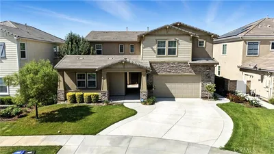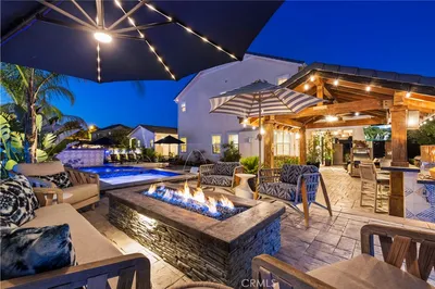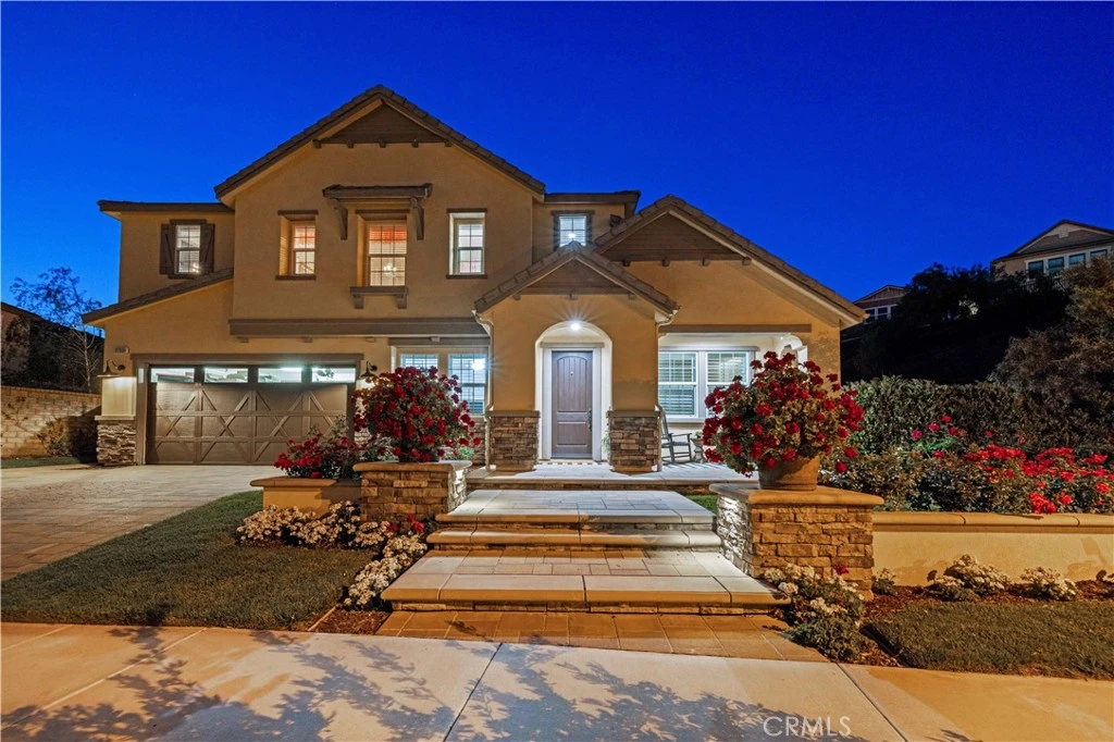 Fall in love with this stunning executive pool home! Located in River Village, Santa Clarita's most popular gated community. River Village is renowned for its master planning, award-winning schools, parks, scenic bike and walk paths, and open space hiking trails. This home features 4800+ SqFt, 5 Bedrooms + 6 Bathrooms + Loft + Office (could be 6th Bedroom). This home has it all, high-end upgrades, OWNED SOLAR PANELS, and exquisite hardscaping, including a stylish California room and a master deck perfect for relaxation and views. The interior showcases elegant wood flooring, custom tile, recessed lighting, iron staircase, crown moulding, and an integrated alarm system. The kitchen serves as a culinary haven with a large center island, Viking 6 burner stove, a built-in refrigerator and microwave, a wine fridge, and a butler’s pantry overflowing with storage space. The family room merges comfort with elegance, featuring custom shelving, a fireplace, and opens to the California room through striking accordion doors. A large ensuite bedroom on the first floor offers versatility as a guest suite or mother-in-law quarters, complemented by the office and formal living and dining areas. The master suite is a sanctuary, with a private sitting area, two walk-in closets, and a deck with pool views. Its bathroom provides a spa-like experience with a large soaking tub, double vanities, and a shower. The backyard oasis is designed for entertainment, highlighted by a captivating pool and spa with a swim-up bar, a BBQ pavilion, a fire pit with seating, and a vast grassy area with views of the hills and mountains. Situated close to amenities and highways, shopping and restaurants this home stands as a testament to exquisite living in a community that embodies the best in luxury and convenience. Home sweet home!