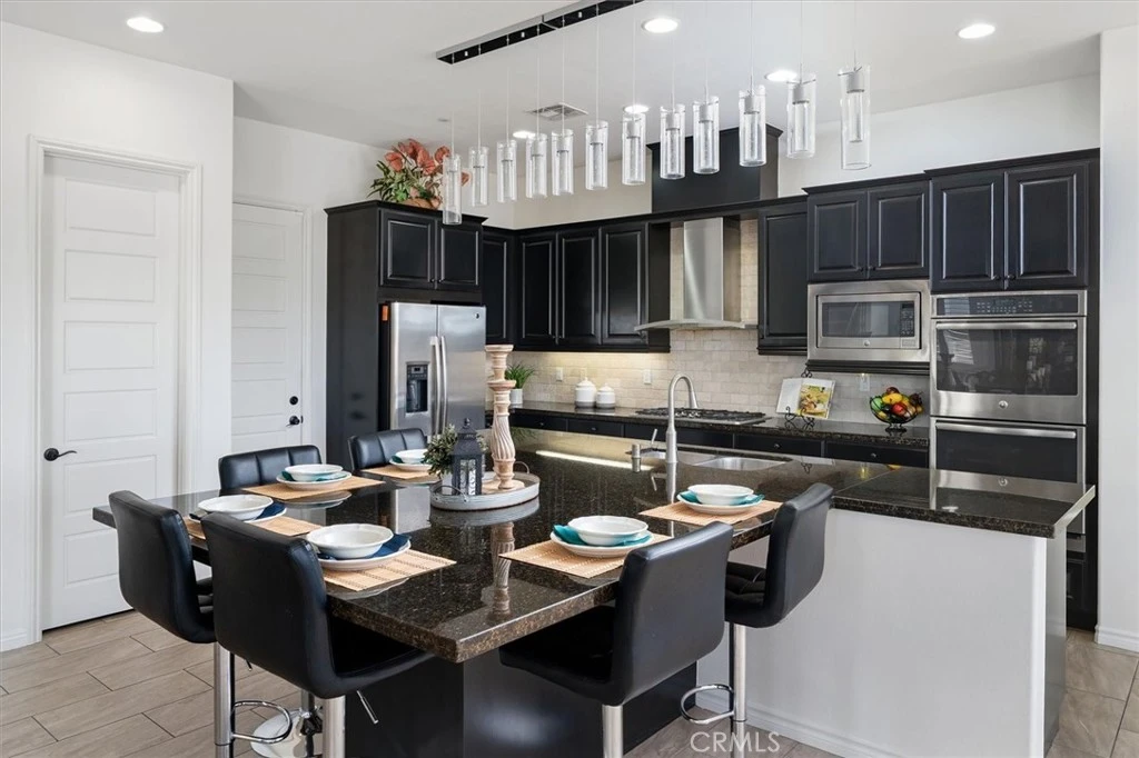 Welcome to this beautifully designed 6-bedroom, 4.5-bathroom home offering over 4,200 square feet of thoughtfully designed living space in the exclusive gated River Village community. With paid solar, flexible living areas, and inviting indoor-outdoor spaces, this home blends comfort, functionality, and entertainment. Inside, the open layout creates an easy flow between the living, dining, and kitchen areas—perfect for everyday living and hosting gatherings. The kitchen features double ovens, huge walk-in pantry, large island with seating for six and plenty of cabinet space. Family room features a fireplace and beautiful views of the surrounding area. Two downstairs bedrooms provide ideal flexibility for guests, multi-generational living, or a private home office. Upstairs, a spacious loft has been transformed into the ultimate entertainment space, featuring a projection screen, built-in surround sound system, blackout blinds, making it perfect for movie nights, game days, or relaxing evenings at home. The primary suite features gorgeous views, a retreat, en-suite bathroom with two walk in closet, double sinks and a soaking tub. There are 3 more bedrooms upstairs, one with an attached bathroom, making it mini primary suite. Laundry room is conveniently located upstairs with sink and large walk-in linen closet. An enclosed sunroom offers additional year-round living space and a wonderful place to relax or entertain while enjoying views of the backyard. Step outside to your private backyard retreat featuring incredible views of Santa Clarita, a water feature with fountains and firepit, creating a peaceful setting for outdoor gatherings or quiet evenings under the stars. Additional highlights include paid solar for energy efficiency and savings, a 3-car garage, and generous living space designed to accommodate modern lifestyles. Don’t miss the opportunity to own this exceptional home in a highly desirable gated Santa Clarita community. Schedule your private showing today.