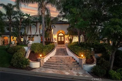 TWO HOMES. TWO POOLS. NEARLY 4 ACRES OF GATED LUXURY WITH PANORAMIC VIEWS. Privately set behind gates on approximately 3.8 ACRES, this extraordinary estate offers unmatched privacy, flexibility, and resort-style living. Featuring TWO SEPARATE RESIDENCES, TWO PRIVATE POOLS, PANORAMIC VIEWS, FULL CITY UTILITIES, NO MELLO-ROOS, 63 FULLY OWNED SOLAR PANELS, and EV CHARGERS AT BOTH HOMES, this rare compound is designed for multigenerational living, rental potential, or a private retreat with long-term energy efficiency. With NO FRONT OR REAR NEIGHBORS, the setting feels expansive and secluded. The SINGLE-STORY MAIN RESIDENCE spans over 3,800 SQ FT with 5 BEDROOMS AND 4 BATHROOMS in a spacious OPEN-CONCEPT LAYOUT ideal for entertaining. A dramatic entry reveals SOARING CEILINGS, upgraded LED lighting, and a stunning FLOOR-TO-CEILING STONE FIREPLACE anchoring the living space. The formal dining room and oversized family room flow into the CHEF’S KITCHEN, appointed with a MASSIVE CENTER ISLAND WITH UTILITY SINK, PREMIUM KITCHENAID APPLIANCES, DOUBLE OVENS, WINE REFRIGERATOR, and a breakfast nook positioned to capture sweeping views. The LUXURIOUS PRIMARY SUITE features a private fireplace, PLANTATION SHUTTERS, DUAL WALK-IN CLOSETS, and a SPA-INSPIRED BATH with soaking tub, oversized glass-enclosed shower with seating, and dual vanities. Additional upgrades include TWO NEW HVAC SYSTEMS, updated irrigation lines, fresh interior and exterior paint, freshly painted perimeter gates, and NEW POOL EQUIPMENT WITH AQUALINK APP CONTROL for modern convenience. The outdoor living spaces are designed for elevated entertaining with a covered patio, BUILT-IN BBQ, CUSTOM FIRE PIT WITH SEATING, grassy areas, and a striking black-bottom pool and spa. The SEPARATE GUEST HOUSE offers approximately 1,200 SQ FT with 2 BEDROOMS AND 3 BATHROOMS, vaulted ceilings, bamboo flooring, and an open design. The kitchen includes double ovens, warming drawer, dishwasher, and breakfast bar. Enjoy its own private pool and spa, outdoor sauna, detached laundry with tankless water heater, covered carport, and separate driveway — providing exceptional independence and flexibility. An expansive GATED MOTOR COURT accommodates approximately 8 VEHICLES, including a FOUR-CAR GARAGE, plus additional guest parking and RV PARKING.
