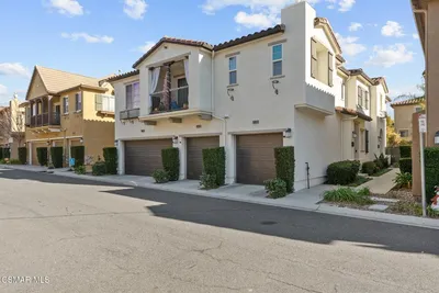 Welcome home to this charming 3-bedroom, 2.5-bathroom, 1,333 sq. ft. end-unit townhome nestled in the gated Seco Villas community of Mountain View Villas, tucked away in beautiful Santa Clarita. Step through the private front courtyard and enter into an inviting open floor plan with a great-room style main floor. The living room is flooded with natural light and features light colored wood-like flooring, a cozy fireplace, and a sliding glass door leading to the front courtyard—perfect for indoor-outdoor living. The adjacent dining area is highlighted by a moody, modern chandelier, adding a touch of elegance to the space. The modern kitchen boasts matching wood-like floors seen in the living room, ample storage, granite countertops, stainless steel appliances, and a convenient breakfast bar for casual dining. Additional main-floor features include a powder bath and direct access to the attached two-car garage with an in-unit laundry area. Upstairs, the home continues to impress design carpet on the stairs and the same wood-like flooring throughout the upstairs areas. Two spacious bedrooms with vaulted ceilings share a full hall bath, and one of the rooms is enhanced by a stylish custom board and batten accent wall. The primary suite offers vaulted ceilings, three closets of which two are mirrored, and a private ensuite bath. The friendly and welcoming Seco Villas community features beautifully landscaped common areas, a community pool and spa, and the added security of gated access. Conveniently located near shopping, dining, entertainment, and recreation, this home offers the perfect blend of comfort and convenience. Don't miss your chance to make this stunning townhome yours!