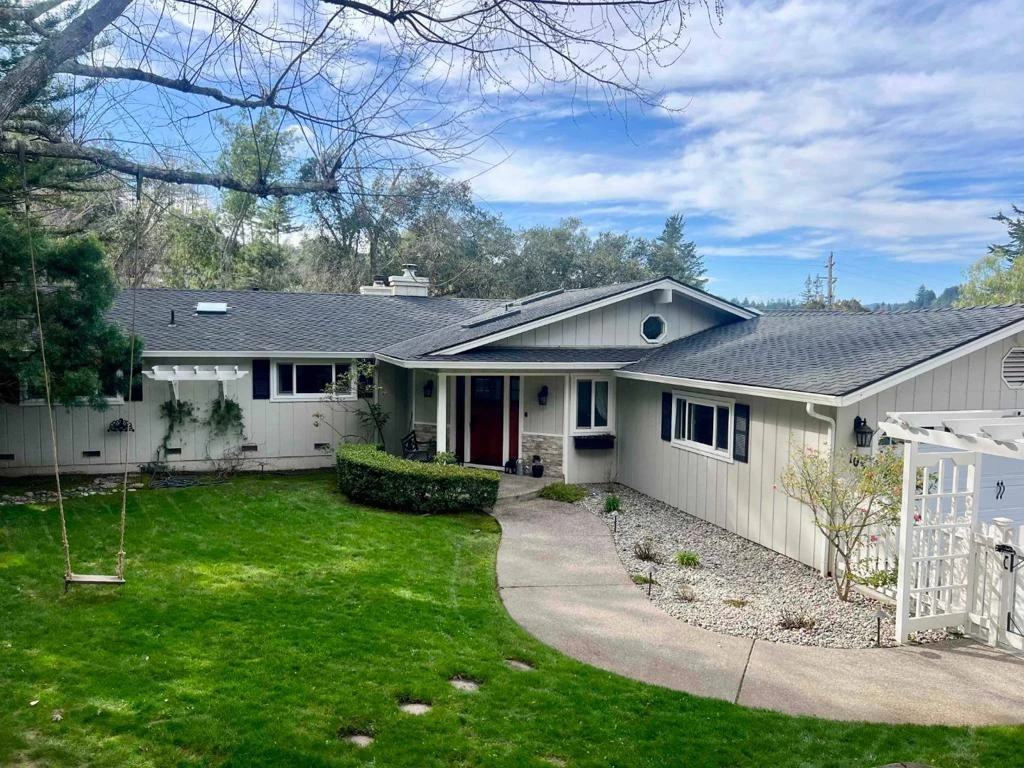 Gorgeous Remodeled Scotts Valley Home with Pool. This stunning 3-bedroom, 2.5-bathroom, 2,186 sq ft home sits on a huge 15,333 sq ft lot with a very private driveway entrance. The chefs kitchen features stone countertops, stainless steel appliances, a breakfast bar, and an adjoining dining area, with a separate dining room beside the kitchen for effortless entertaining. The family room offers a fireplace and built-in cabinetry, while the living room, with vaulted ceilings and a second fireplace, is a fantastic space for gatherings. Hardwood floors flow throughout. The large primary suite has an ensuite with double sink vanity, oversized shower, and walk-in closet. Two additional bedrooms share a remodeled full bath, plus an updated half bath for guests. Step outside to a sparkling pool perched above the front yard with mature shade trees and lawn, and enjoy a newly landscaped backyard with artificial lawn and patio. New roof and skylights complete this exceptional Scotts Valley home, just minutes to shops, restaurants, Highway 17, and a 10-minute drive to the beach.