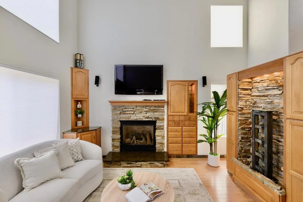 Truly stunning remodeled Skypark home with soaring ceilings and a bright, open floor plan. The inviting family room centers around a beautiful stonework hearth and tranquil water feature, creating a peaceful atmosphere. Custom built-in cabinetry, real wood doors, remote-controlled window coverings, and quality wood and stone finishes throughout add both function and elegance. The kitchen is a true showstopper, featuring gorgeous granite slab countertops, modern cabinetry, and a striking stone tile backsplash that ties the design together perfectly. Upstairs bedrooms are all spacious with ample closet space. The beautifully remodeled bathrooms showcase designer tile, updated vanities, soaking tubs, towel warming rack, and high-end fixturesfinished with exceptional attention to detail. Step outside to your own private backyard oasis with a waterfall, pergola, and firepit areaperfect for relaxing or entertaining. Ideally located on a quiet court just moments from Skypark, the Scotts Valley Library, community center, tennis courts, shopping, transit center, and theater. Top-rated schools complete this exceptional offering.