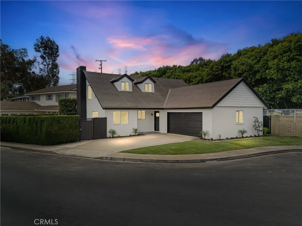 Stunning home nestled on a quiet cul-de-sac with 2 MAIN floor bedrooms. This beautifully updated residence blends timeless design with contemporary upgrades, offering a refined yet relaxed lifestyle just minutes from the beach and backs up to Edison Park. Step through the custom front door into a light-filled interior featuring an open-concept floor plan, wide-plank luxury vinyl flooring, and recessed lighting throughout. The heart of the home is the gourmet kitchen, boasting quartz counters, custom cabinetry, stainless steel appliances, for entertaining. The adjoining dining and living spaces are thoughtfully designed for both comfort and style, complete with a modern fireplace and seamless indoor-outdoor flow. New outlets, New baseboards, New doors, New paint inside & out. Scraped ceilings. New Heating system. New double pane windows & slider. Very light and bright with. Huge primary suite is a tranquil retreat with a custom sparkling fireplace, and a walk-in closet. Upstairs bath has dual vanities, and a spacious walk-in shower. Additional bedrooms are generously sized with mirrored closet doors. Enjoy California living in the private backyard oasis—perfect for entertaining or unwinding—with fresh landscaping, a large patio, and ample space for gatherings. Finished garage with epoxy floors. Every inch of this home has been meticulously renovated. Ideally located within the award-winning Los Alamitos School District and just moments from parks, shopping, dining, and the beach, 109 Loyola offers the best of both comfort and convenience. Truly turn-key, thoughtfully reimagined, and ready to welcome you home everyday.