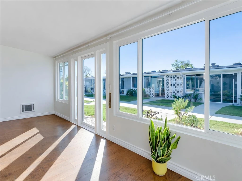 Welcome to this beautifully updated one-bedroom spacious expanded unit in the highly desirable Mutual 1 of Leisure World 55+ senior complex. This light and bright home features laminate flooring throughout, an upgraded kitchen with Quartz countertops, and bathroom with a step-in shower. Two Skylights add a fresh, airy ambiance by bringing in natural sunlight. Freshly painted move right in! Enjoy the convenience of a dedicated parking spot and a private storage closet. Located in a secure, 55+ resort-style community offering pools, golf, fitness centers, and a vibrant social scene—this home is the perfect blend of comfort and active living.