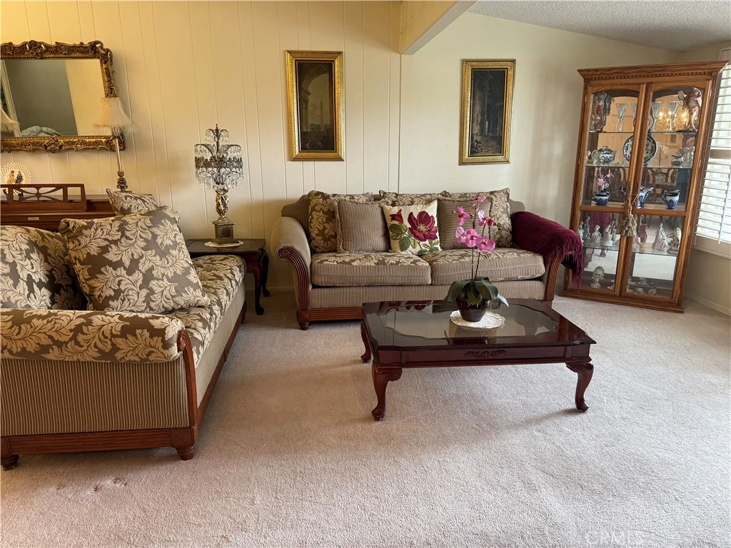 Located on a fabulous greenbelt is this fully expanded two-bedroom one- bathroom home with a formal dining area. This lovely home features a leaded glass front door that enters into an entry area with a walk-in storage closet and a spacious living room that is fully expanded. Adjacent to the living room is a charming formal dining area. The kitchen has white cabinets, built-in electric appliances including a stove, oven, refrigerator, added microwave, and an added ceiling fan. Both bedrooms have mirrored wardrobe closet doors. The bathroom has cultured marble counters and a cut-down shower for walk-in convenience. Additional features are double pane windows and plantation shutters throughout, a wall heating and air conditioning unit in the living room. The bedrooms, living room, and dining room are carpeted, with vinyl tile flooring in the kitchen, bathroom, and hallway. This charming home faces southwest, has a lovely green belt view, and enjoys the wonderful ocean breezes.