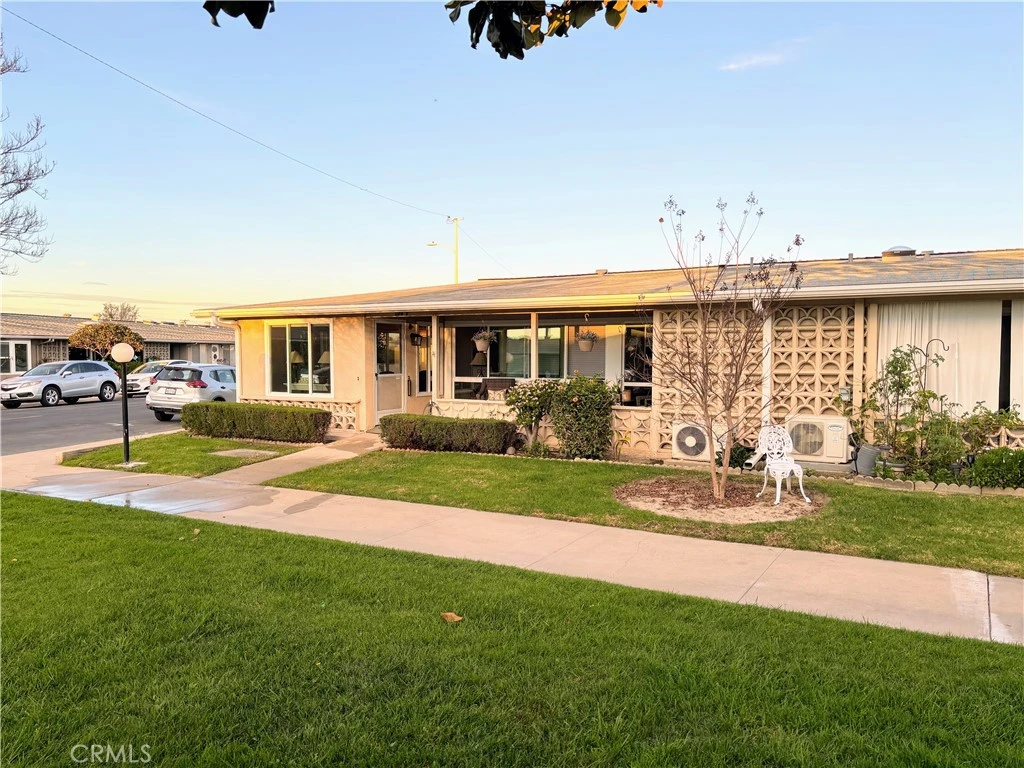 This is a fantastic move in ready, partially expanded, two bedroom one bath corner unit in Mutual 5. It has the best of all worlds - greenbelt in front for privacy plus drive-up on the side so you can easily unload groceries. In fact there is a side door allowing direct access to the street side of the unit. It has a perfect location right in the middle of Leisure World for easy access to all amenities and well away from the freeway and the power plant. The unit boasts dual pane windows, two heat pumps, and beautiful laminate throughout. The kitchen has a built in microwave and dishwasher as well as a newer countertop. The bathroom shower has upgraded glass and there is a WASHER/DRYER! The patio out front is perfect for that morning coffee or evening wine with friends. There is a lockable storage room on the patio. If you are looking for a move in ready corner unit in a great location at a reasonable price - this is it! Carport located at Bldg 71, Space 31.