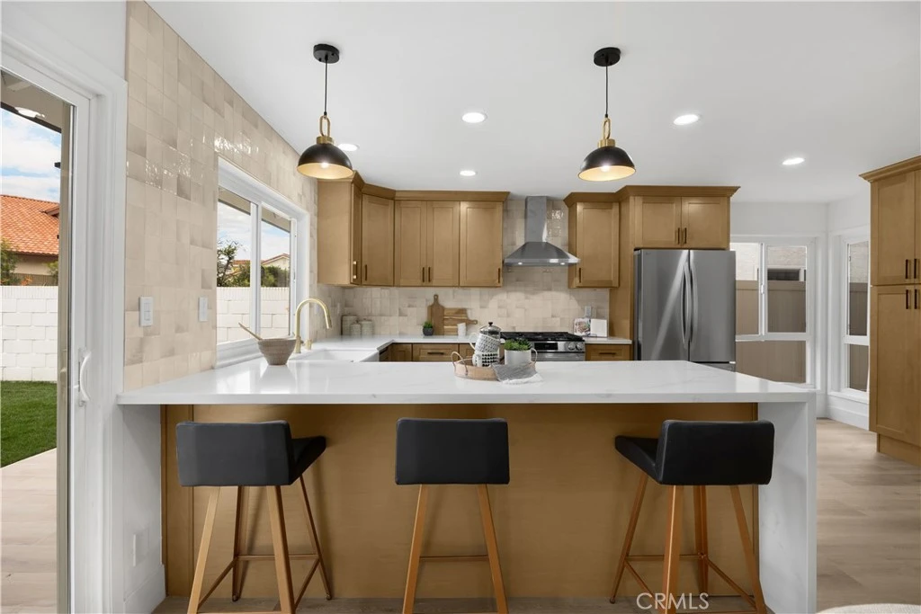 Embrace refined coastal living in this exquisitely renovated single-level home, set within the highly sought-after College Park East neighborhood of Seal Beach and the award-winning Los Alamitos School District. Spanning over 2,000 square feet, this beautifully reimagined residence offers four bedrooms and two fully remodeled bathrooms, blending elevated design with everyday functionality. A warm boho-coastal aesthetic welcomes you inside, where white-oak inspired luxury vinyl plank flooring flows throughout, anchoring the home with timeless sophistication. The living space is positioned around an elegant fireplace with sitting area, accented by a striking fluted tile backdrop that adds texture and architectural interest. The heart of the home is a stunning chef’s kitchen, designed to impress and perform, featuring wood cabinetry, stainless steel appliances, quartz countertops and a waterfall-edged peninsula, designer tile backsplash, and a farmhouse sink. Sliding glass doors extend the living experience outdoors, opening to a wood-look tiled patio and a lush, grassy backyard ideal for entertaining, relaxing, or play. Thoughtful upgrades continue throughout the home, including new recessed lighting, new designer light fixtures, and ceiling fans in all four bedrooms. The primary suite is a true retreat, complete with a walk-in closet and a ensuite bathroom featuring an oak toned vanity and a frameless glass-enclosed shower with modern, high-end finishes. The hall bathroom is equally refined, offering dual sinks, a wood vanity, and a fully tiled bath enclosure. Additional highlights include dual-pane windows throughout, upgraded electrical with a 200-amp panel, a solar panel system for significantly reduced energy costs, upgraded plumbing, a brand-new HVAC system with smart thermostat, new water heater, a new garage door and motor, a new sprinkler system, and fresh sod. Perfectly positioned adjacent to Heather Park, with tennis courts and playgrounds, College Park East also features two additional neighborhood parks with basketball courts and play areas. Enjoy close proximity to the Seal Beach Tennis & Pickleball Center, Old Ranch Country Club, Old Town Seal Beach dining, major freeway access via the 405, 605, and 22, and the iconic Seal Beach Pier and shoreline. This is the turnkey home buyers wait for. Single-level, beautifully remodeled, energy-efficient, and located in one of Seal Beach’s most desirable neighborhoods. Just in time for spring.