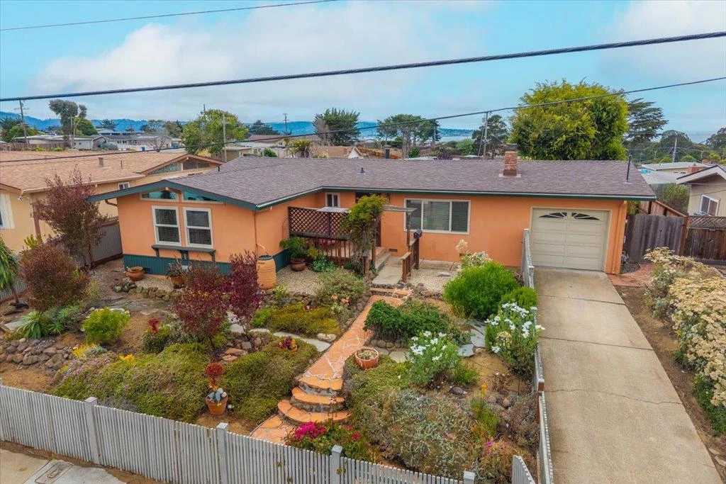 Enjoy sweeping ocean views from this spacious and stylish 4-bedroom, 3-bath mid-century modern ranch, ideally located in sought-after upper Seaside. Thoughtfully designed with high ceilings and rounded plaster walls, this Eichler-inspired home blends vintage character with modern updates. The home features two primary suites, one with a private entrance, perfect for guests or an in-law suite. Original oak, tile, and stone flooring bring warmth and authenticity throughout. The updated kitchen (2016) and a luxurious spa-style bath with a clawfoot tub and waterfall shower add a touch of modern luxury. Step outside to tranquil meditation gardens with stone pathways, or entertain with ease from the ocean-view backyard featuring stamped concrete and a wood deck. The sun-filled great room, 1-car garage, and unique architectural details make this coastal gem truly one of a kind. Dont miss your chance to own a serene retreat with timeless style and unbeatable views!