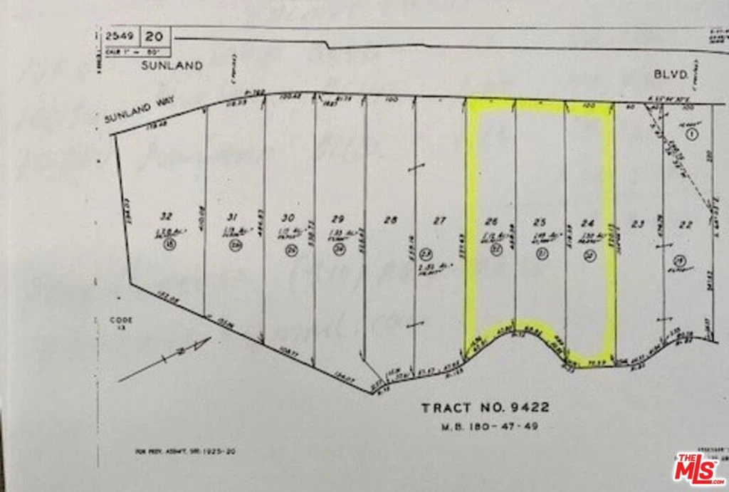 *3 lots w/total of apx.3.4 acres * Shadow Hills Location *Great Development Opportunity for 6 New Homes *Contiguous 3 one acre upslope parcels with 100 foot frontages for each lot * Permitted & completed retaining wall across all 3 lots * Permits, geological + soil reports available from city * Driveway at 10100 Sunland Blvd. at access east side of site *Proposed road between 3 street level homes + 3 above * Some flat area where proposed street is located.1) 10100 Sunland Blvd. apn # 2549-020-020 -1.2 ac 2)10096 Sunland Bl-apn #2549-020-021-1.09 ac 3)10010 Sunland Blvd-apn # 2549-020022-1.12 ac. = Total of apt 3.4 acres. Seller may consider financing.