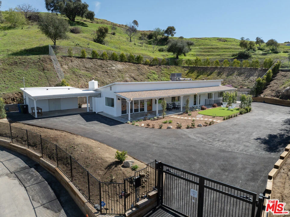 Welcome to this breathtaking 3-bedroom, 2-bathroom mid-century ranch-style estate, a designated horse property, located in the highly sought-after community of Shadow Hills, renowned for its natural charm and scenic beauty. Tucked behind a private gate, this exquisite estate has been beautifully remodeled, blending modern elegance with rustic character to create the ultimate sanctuary. As you arrive, a grand circular driveway welcomes you, offering both convenience and impressive curb appeal. This exceptional property boasts breathtaking panoramic views, showcasing the stunning natural beauty of Shadow Hills. You'll be captivated by the sweeping vistas of rolling hills, lush landscapes, and vibrant sunsets. Step inside to find a bright and airy open-concept layout, where gorgeous vaulted wood-beamed ceilings add warmth and character. Newer wood and tile flooring flow throughout, complementing the designer kitchen, which boasts quartz countertops, stainless steel appliances, and a spacious breakfast bar. Expansive newer windows bathe the home in natural light, while sleek accordion doors seamlessly extend the living space into the sprawling yard, perfect for entertaining or enjoying peaceful outdoor moments. The luxurious primary suite is a true retreat, boasting a spacious walk-in closet with custom-built-ins for effortless organization. The beautifully updated en-suite bathroom offers a spa-like experience, featuring a separate glass-enclosed shower and a deep soaking tub, perfect for unwinding after a long day. The additional bedrooms provide both comfort and sophistication, offering versatile space perfect for guests or a home office. The home also features a dedicated laundry room, thoughtfully designed for both style and functionality. This spacious area includes a side-by-side washer and dryer, quartz countertops, extra cabinetry for ample storage, a convenient sink, and a closet to keep everything organized and within reach. The property is beautifully framed by lush landscaping, with custom pavers guiding you through the meticulously maintained grounds. A terraced hillside adds a stunning element, creating multiple levels of outdoor space that offer both privacy and breathtaking views. This thoughtfully designed landscape provides the perfect backdrop for relaxation, entertainment, and enjoying the natural beauty that surrounds you. Embracing the beauty of its surroundings, this home sits adjacent to the scenic nature preserve, Fond Family Open Space, offering direct access to picturesque hiking trails. Whether you enjoy morning walks, horseback riding, or simply immersing yourself in nature, this tranquil setting provides endless outdoor adventures just steps from your door. Located in this tranquil, yet convenient setting, this property provides the best of both worlds: serene peaceful living just minutes from city shopping, dining, major studios, and easy freeway access. Opportunity abounds with potential for an addition, ADU or Jr. ADU. Schedule your private tour today and experience the serenity and beauty of this extraordinary estate.