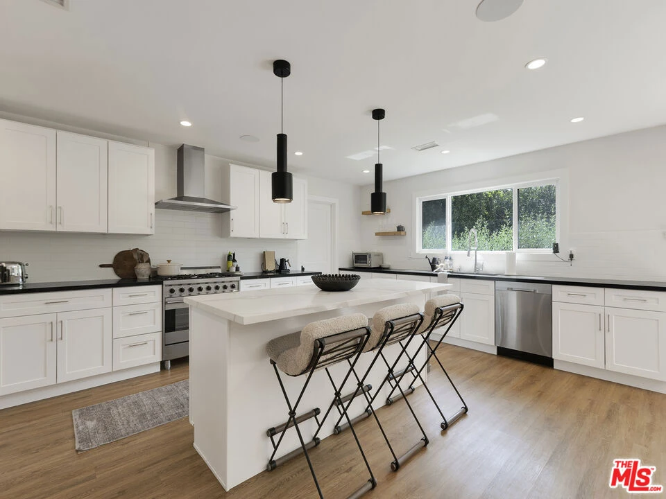 Beautiful single-story 3 bedroom, 3.5 bathroom modern farm home. Open floor plan with large fully equipped Chef's kitchen that boasts white and black quartz counter tops, stainless steel appliances, 36-inch gas range, and white Shaker cabinets. The great room adjacent to the kitchen is light and bright and opens to a tranquil outdoor patio which features a sparkling pool with waterfall feature and spa. The master bathroom includes an oversized shower. 2 additional bedrooms each with their own private en-suites complete the home. Engineered wood flooring is showcased through the home. Sited on a picturesque corner lot and located close to Ventura Blvd's restaurant row and fashionable shops, neighborhood parks, and within proximity to all the valley Studios. This home is also situated in the desirable pocket of Chandler Estates.