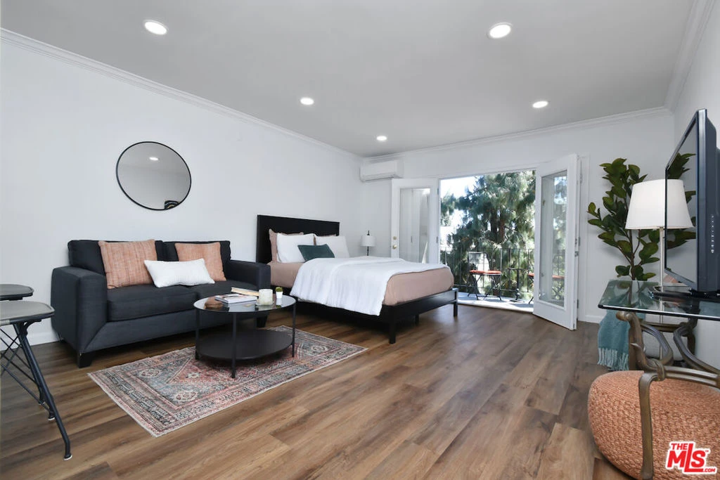 Welcome to 15344 Weddington Street #308, a fully remodeled Sherman Oaks penthouse/studio crash pad, a true Pied-a-Terre just minutes from everything LA has to offer. Step inside and to your left is an ultra light and bright full bath with a shower over tub, custom vanity, new light fixture, and skylight. Across the hall, there's a spacious walk-in closet for storage and all the clothes and shoes you need. Super clean and sleek, the spacious kitchen features new porcelain flooring, refaced cabinets, quartz counters, stainless appliances, has room for a breakfast/dining area, and a pass-through breakfast bar for guests. Over-the-top living/sleeping area has new retrofit LED lighting, clean luxury vinyl flooring, and beautiful French doors with a view of trees/greenery. Complete with a private balcony (with storage)and located within a quiet building with a swimming pool and secure underground parking, this unit is move-in ready and in a prime location close to major shopping and dining and all that LA has to offer. Come check out 15344 Weddington #308