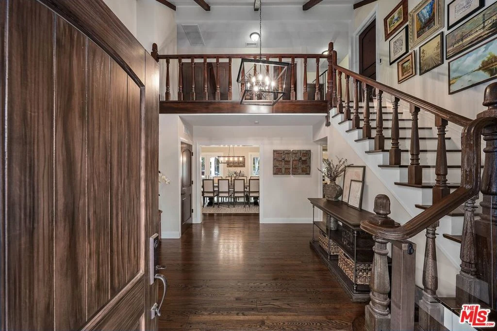 Nestled in the coveted "south of the Boulevard" neighborhood of Sherman Oaks, this traditional style, 2-story, updated home located in the acclaimed Lanai school district is a true gem. From the charming brick motor court to the lush rose garden to the brick & stone chimney, every detail exudes charm and character. Inside, artisan woodwork and hardwood floors welcome you into the expansive 2-story foyer. The large living room provides space for intimate gatherings, while the formal dining room sets the stage for elegant meals. The updated kitchen includes stainless steel appliances, granite countertops, and a breakfast bar opening to an additional dining area and family room. Upstairs, the primary suite impresses with high ceilings, large windows, a walk-in closet, and an en-suite bathroom featuring a large steam shower and dual sinks. Two additional upstairs bedrooms and remodeled bathrooms ensure ample space for family and guests. French doors from the family room, dining room, and first floor bedroom lead out to the expansive grounds where you'll find a serene pool, generous grassy area, large patio, and a newly installed loggia complete with a stone fireplace, heater, and built-in barbecue area with bar seating - all surrounded by mature trees and beautiful flower gardens. Additional features include an attached garage and updated large laundry room just off the kitchen. Conveniently located near both the 101 and the 405, this property is perfect for navigating the best of the Valley and the Westside. Don't miss the opportunity to make this enchanting retreat your own!