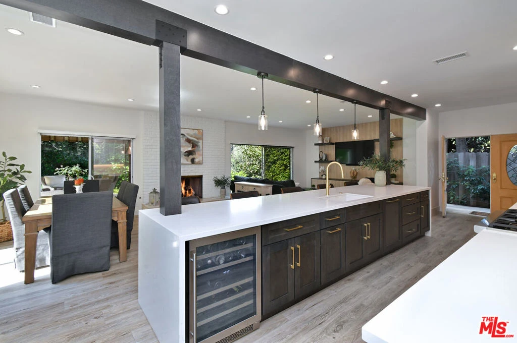 Tucked away on a quiet cul-de-sac in the highly sought-after Royal Woods neighborhood of Sherman Oaks, this stunning 3-bedroom home offers the perfect blend of privacy, space, and modern elegance. Surrounded by lush, verdant grounds, the home is filled with natural light, with picturesque garden views visible through expansive windows and doors in nearly every room. The main level features an inviting, open-concept layout designed for both everyday living and effortless entertaining. A spacious living and dining area flows seamlessly into a beautifully remodeled, modern kitchen outfitted with new appliances and anchored by a striking statement fireplace. A powder room near the entry and a generous laundry room with direct access to the attached two-car garage add convenience and functionality. Upstairs, you'll find three well-proportioned bedrooms, including a serene primary suite complete with a fully appointed en-suite bath. Each space is thoughtfully designed to maximize comfort and light .Set on a large, private lot, the outdoor space is a true retreat featuring mature landscaping and a charming patio ideal for relaxing or dining al fresco. Gardener service is included in the cost of rent, allowing you to enjoy the beautifully maintained grounds with ease. With its tranquil setting and close proximity to the Westside, this exceptional home offers the best of both worlds peaceful living with easy access to the city's most desirable destinations.