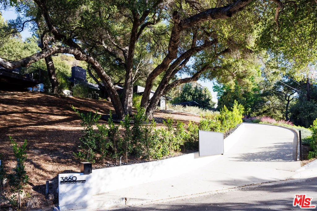 PRICE REDUCTION- A gated architectural residence set on approximately 1.3 acres of land in a private setting surrounded by mature oak trees and native California landscaping. Located near the Westside, Mulholland, schools, and restaurants, the property offers both seclusion and accessibility. The home features large-format slate flooring, custom built-ins, and natural materials throughout. The main living area includes a fireplace, high ceilings, and integrated shelving, flowing into a kitchen appointed with Walker Zanger limestone counters and Gaggenau and Wolf appliances. The primary suite includes a fireplace, walk-in closet, private patio, and en-suite bath with Boffi fixtures and a solid travertine soaking tub. An upstairs secondary suite offers vaulted ceilings and an en-suite bath. The lower level includes a media room, guest bedroom and en-suite bathroom with steam shower. Outdoor spaces include multiple decks, a saline plunge pool, fire pit, and landscaped grounds. The expansive lot size may present an opportunity for expansion, reconfiguration, or further development, subject to buyer investigation, zoning regulations, and city approvals. Buyer is advised to independently verify all information and review seller disclosures.